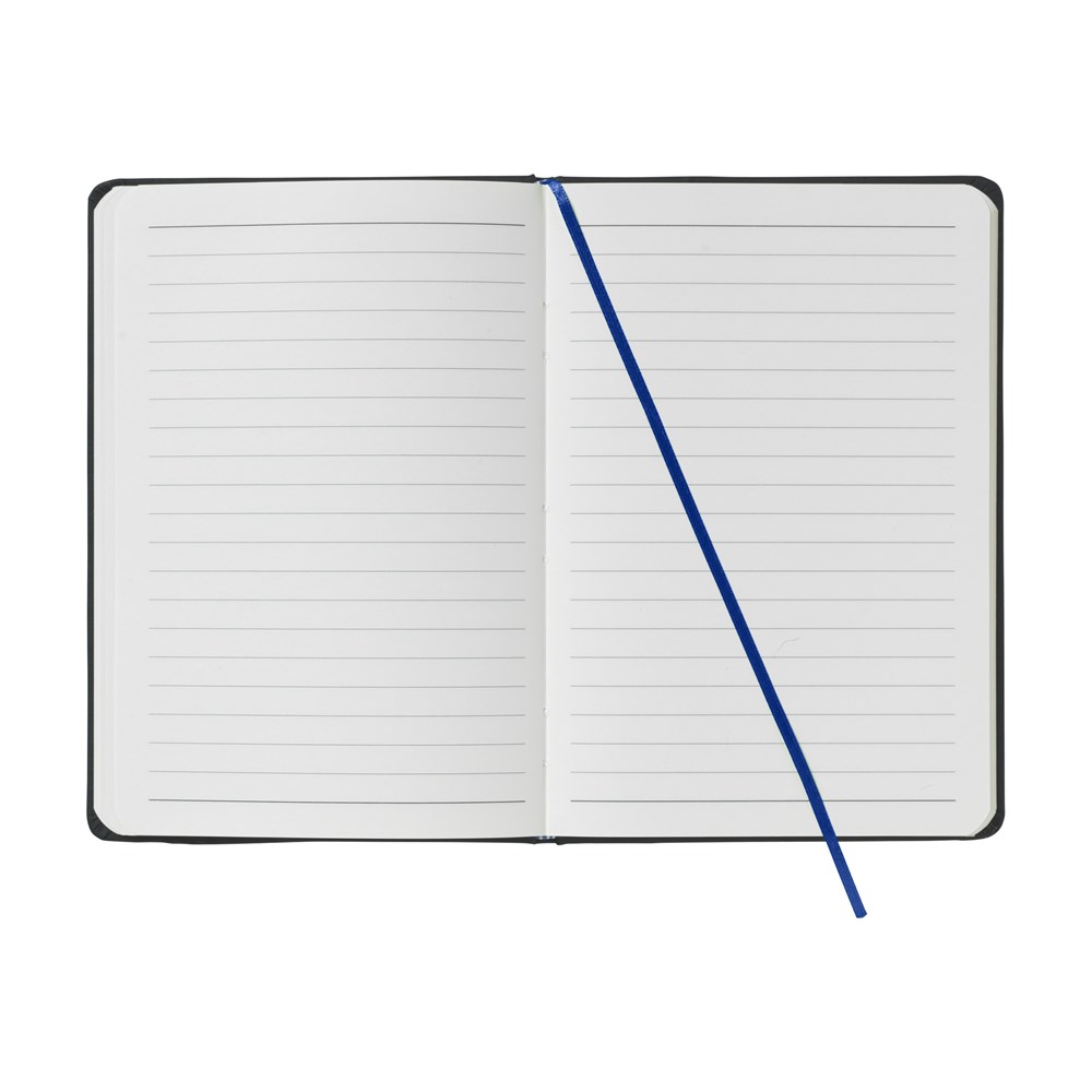 Praktisch en handzaam notitieboek in A5-formaat. Met ca. 80 vel/160 pagina's crèmekleurig, gelinieerd papier (70 g/m²), stevige PU cover, elastische sluiting, gebonden rug en zijden leeslint. FSC Mix gecertificeerd.