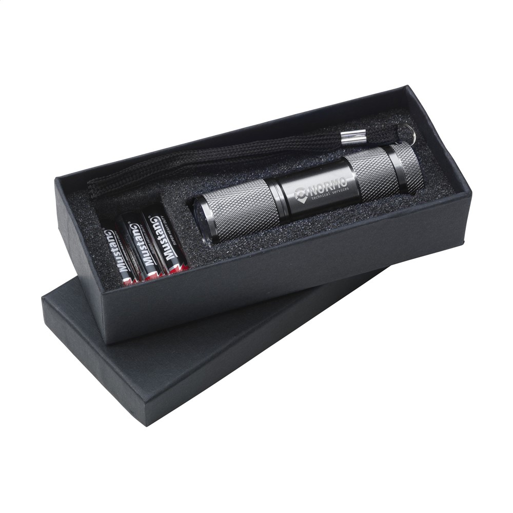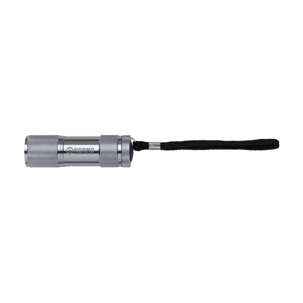 Aluminium staaflampje met 9 felwitte, energiezuinige LED-lampjes en afneembare lus. Afm. Ø 2,7 x 9 cm. Incl. batterijen. Per stuk verpakt.