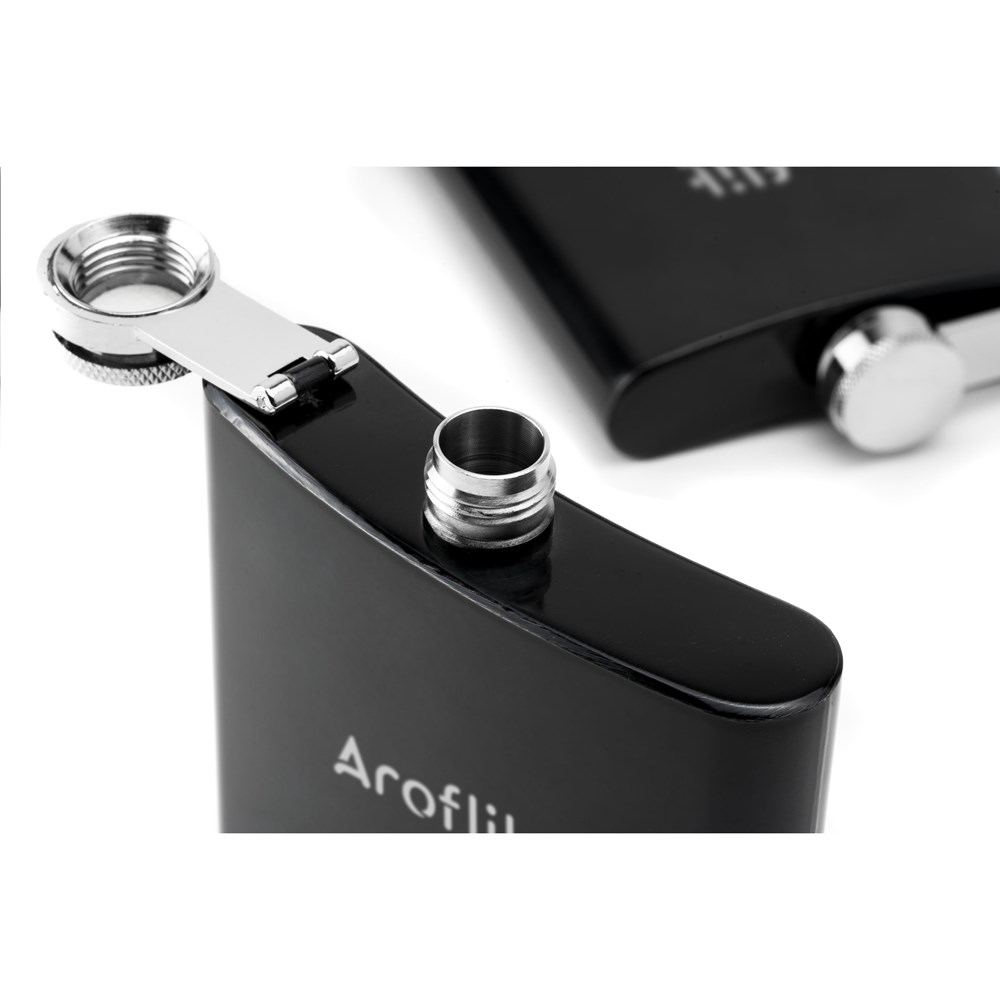 Stoere RVS heupfles met fraaie schroefdop. Lekvrij. Niet vaatwasserbestendig. Inhoud 200 ml. Per stuk verpakt.