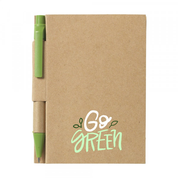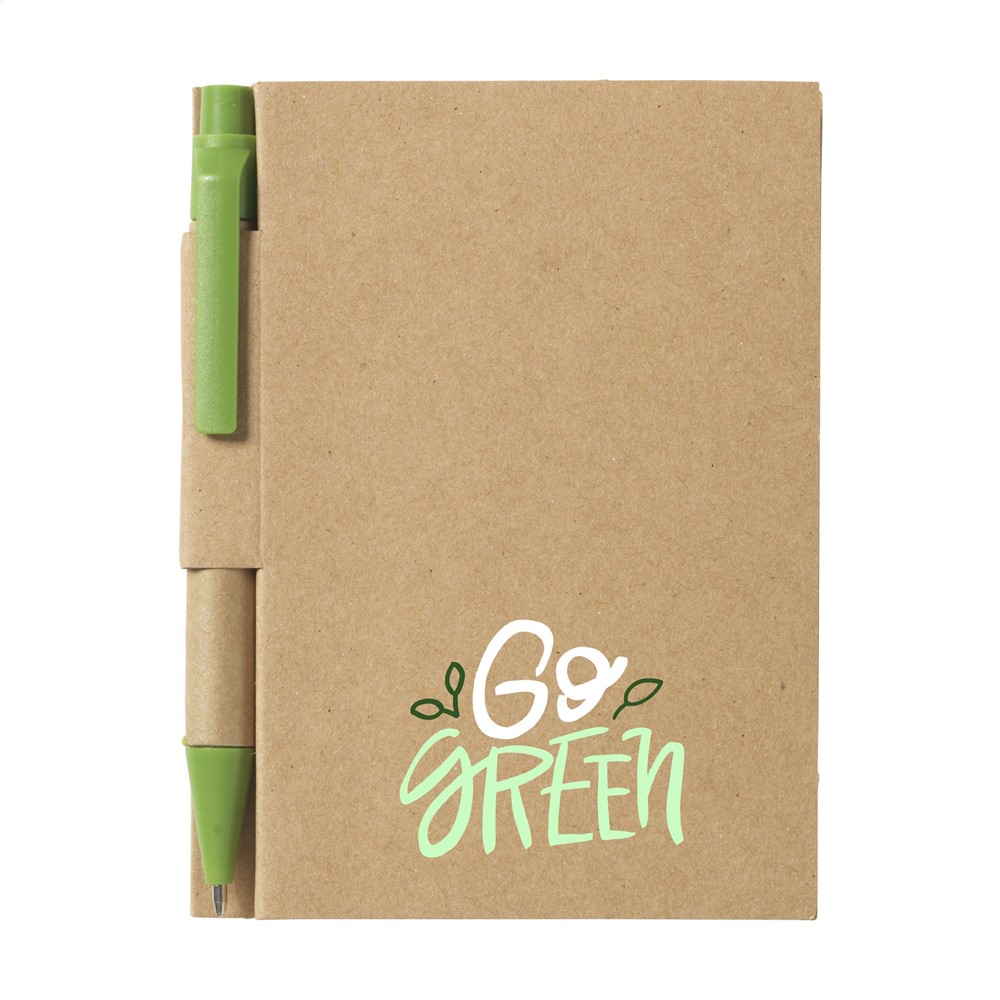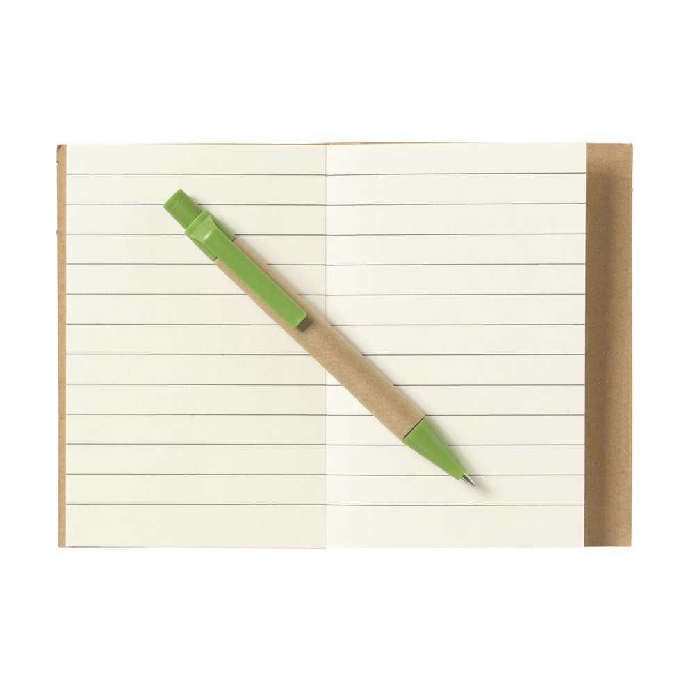 Mini notitieboekje van gerecycled materiaal, met ca. 80 vel/160 pagina's crèmekleurig, gelinieerd papier (70 g/m²), een kartonnen omslag en gebonden rug. Incl. blauwschrijvende balpen. FSC Mix gecertificeerd.