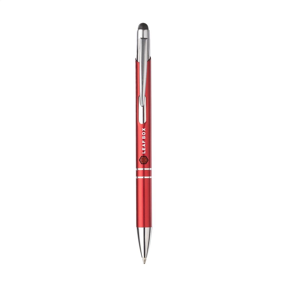 Blauwschrijvende, aluminium balpen. Met top/pointer voor het bedienen van touchscreens (zoals...meer