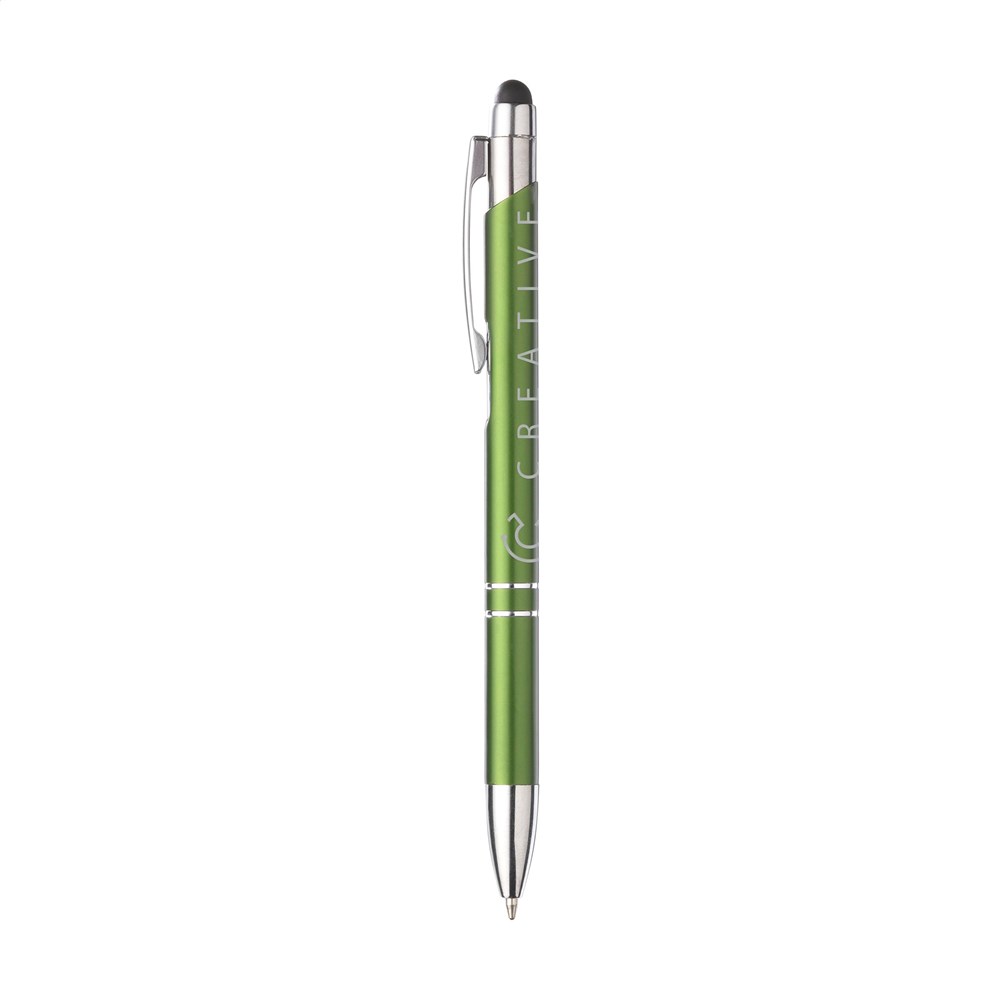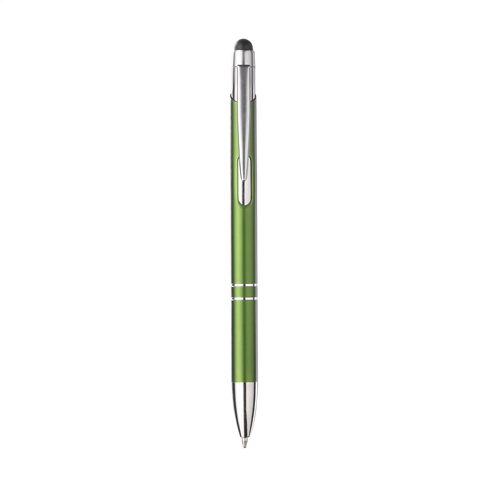 Blauwschrijvende, aluminium balpen. Met top/pointer voor het bedienen van touchscreens (zoals...meer