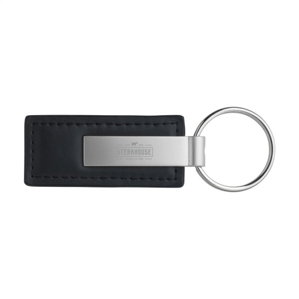 Matmetalen/imitatieleren sleutelhanger met stevige sleutelring. Per stuk verpakt.meer