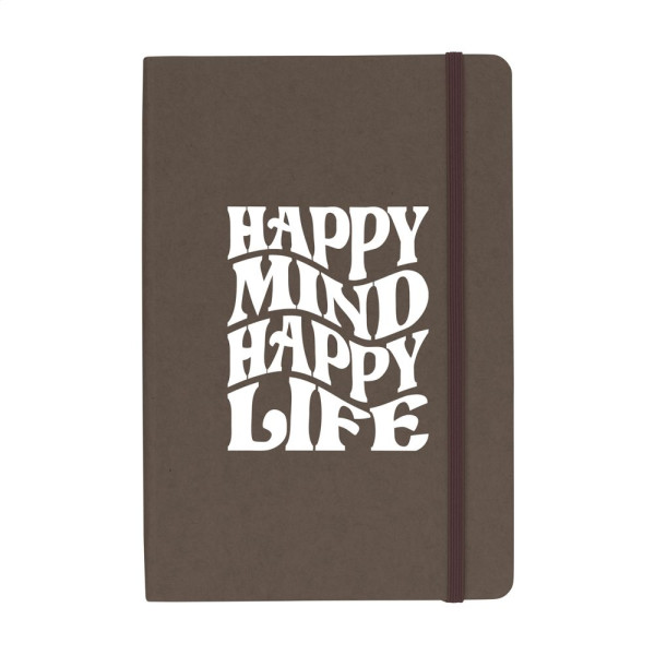 A5-formaat notitieboek met een cover gemaakt van FSC Mix gecertificeerd karton. Het notitieboek heeft ca. 80 vel/160 pagina's crèmekleurig, gelinieerd FSC Mix gecertificeerd papier (70 g/m²). Met gebonden rug en handige elastische sluiting.