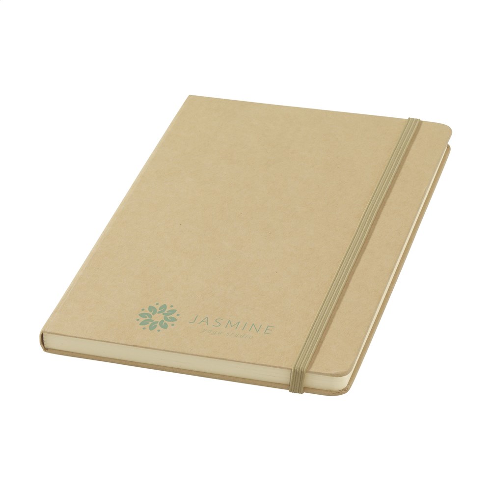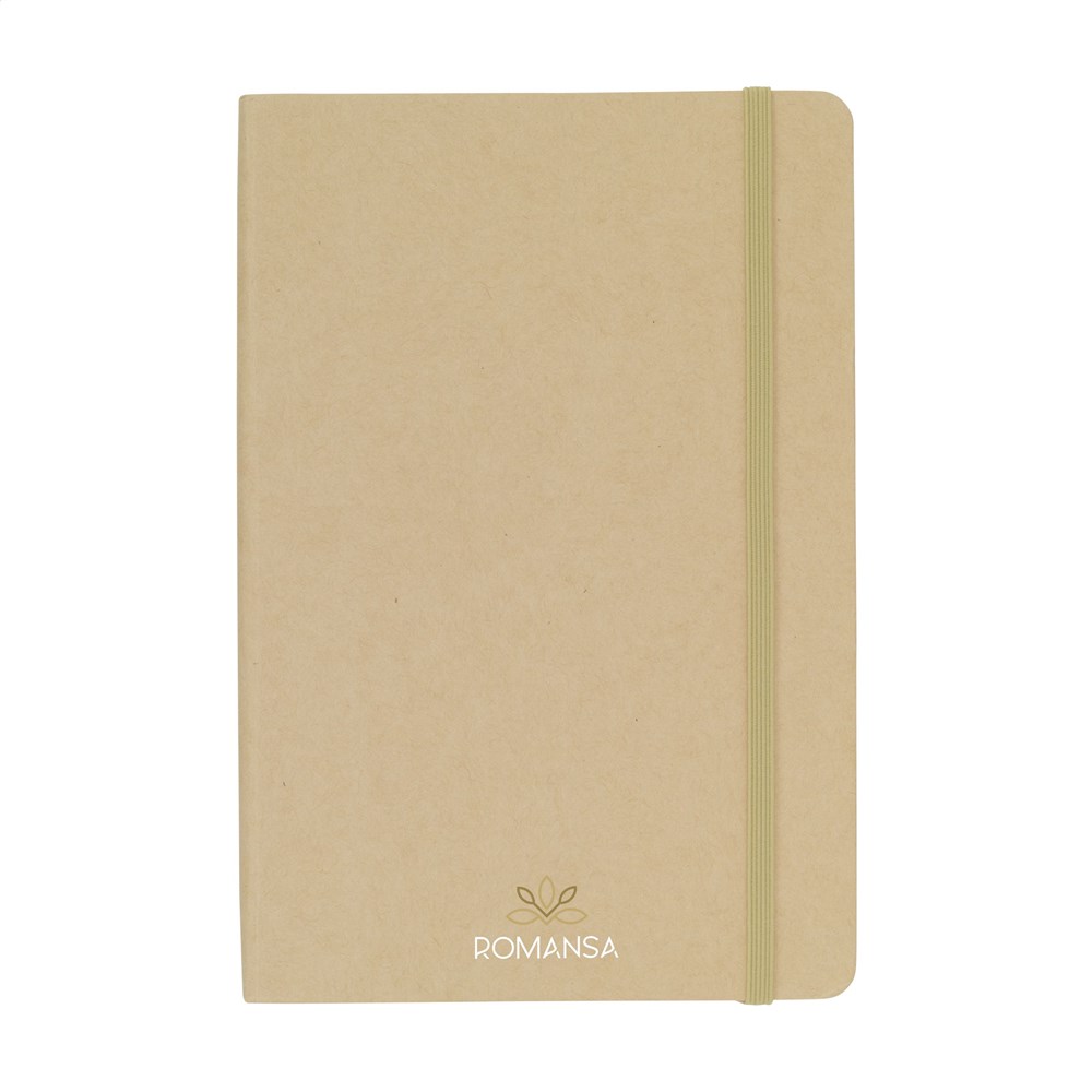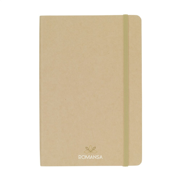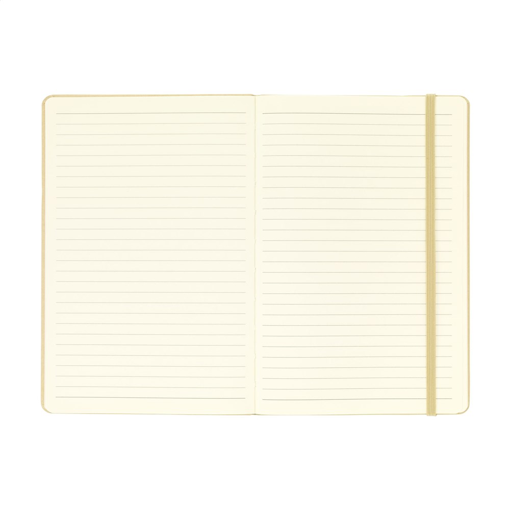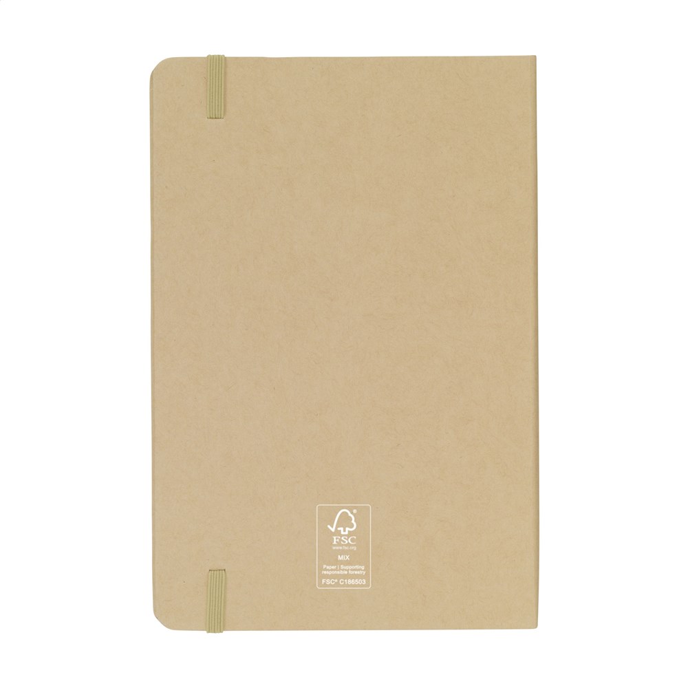 A5-formaat notitieboek met een cover gemaakt van FSC Mix gecertificeerd karton. Het notitieboek heeft ca. 80 vel/160 pagina's crèmekleurig, gelinieerd FSC Mix gecertificeerd papier (70 g/m²). Met gebonden rug en handige elastische sluiting.