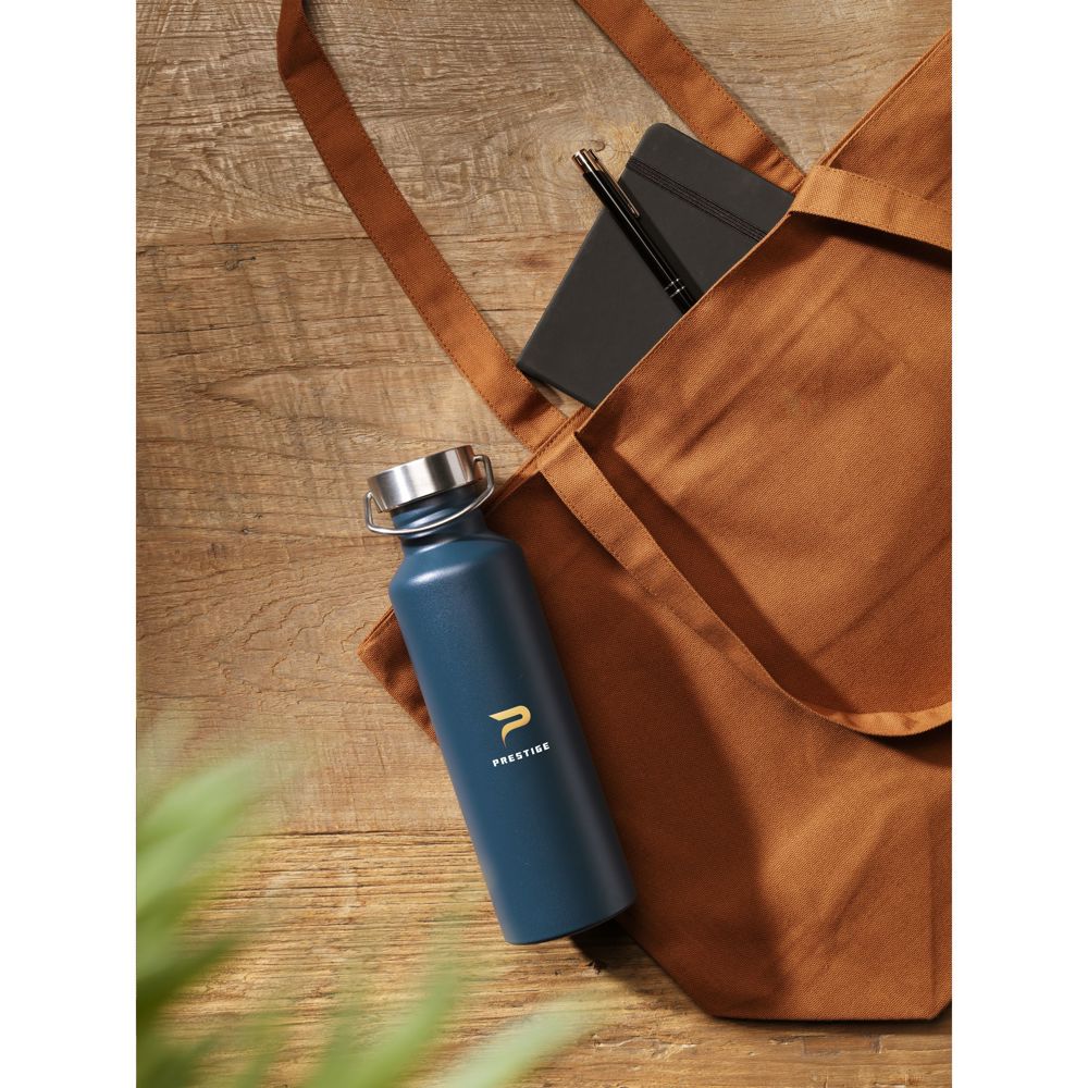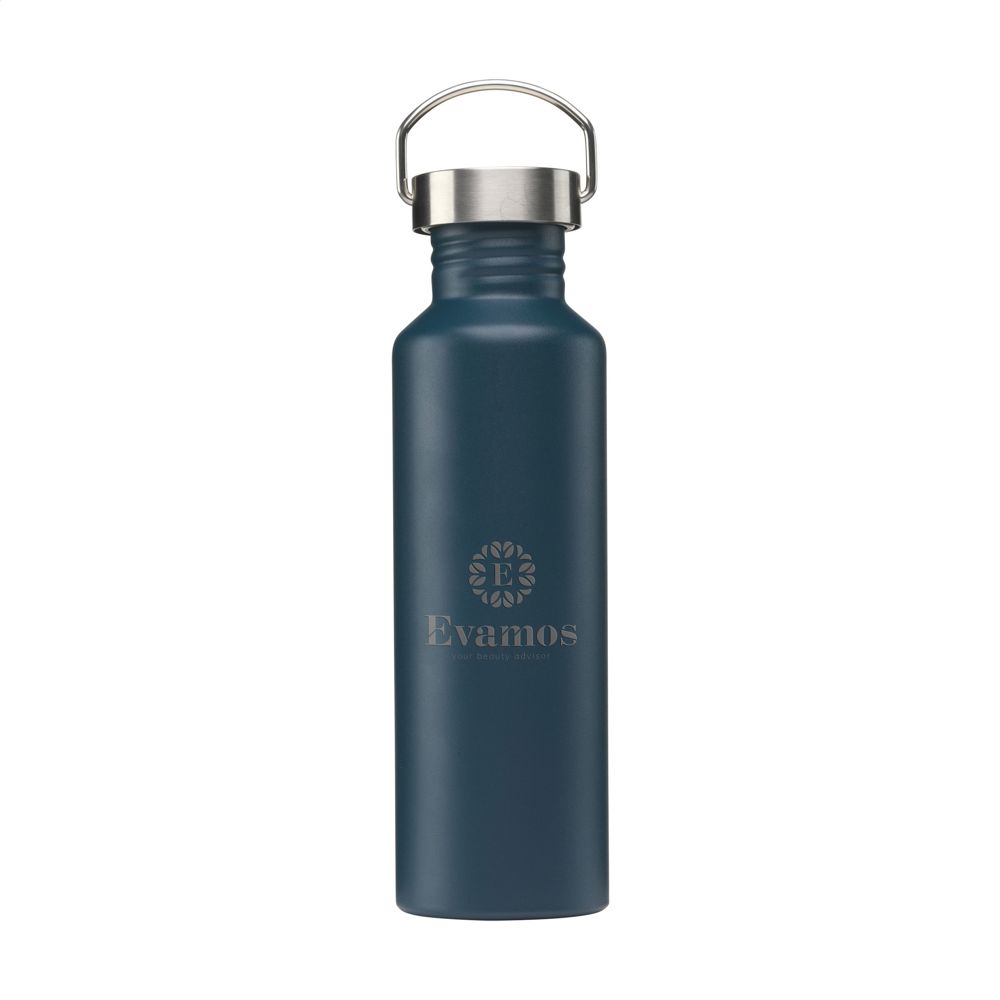 Enkelwandige, lekvrije waterfles met schroefdop en draagring. Gemaakt van gerecycled RVS. Niet vaatwasserbestendig. RCS-gecertificeerd. Totaal gerecycled materiaal: 75%. Inhoud 800 ml. RVS kan vele malen gerecycled worden terwijl de kwaliteit van het materiaal grotendeels behouden blijft. Door het gebruik van gerecycled RVS worden minder nieuwe grondstoffen gebruikt. Dit betekent minder energieverbruik en minder gebruik van water. Een verantwoorde keuze. Per stuk verpakt.