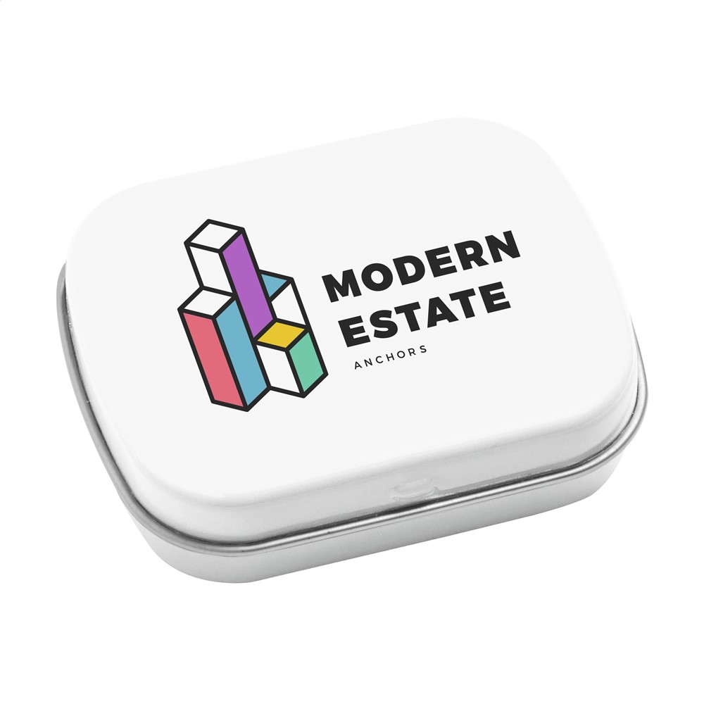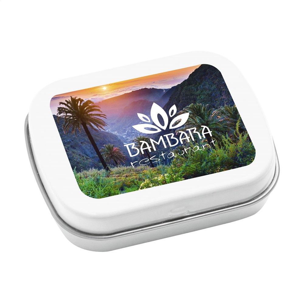 Uitdeelblikje met ca. 25 g frisse pepermuntjes.