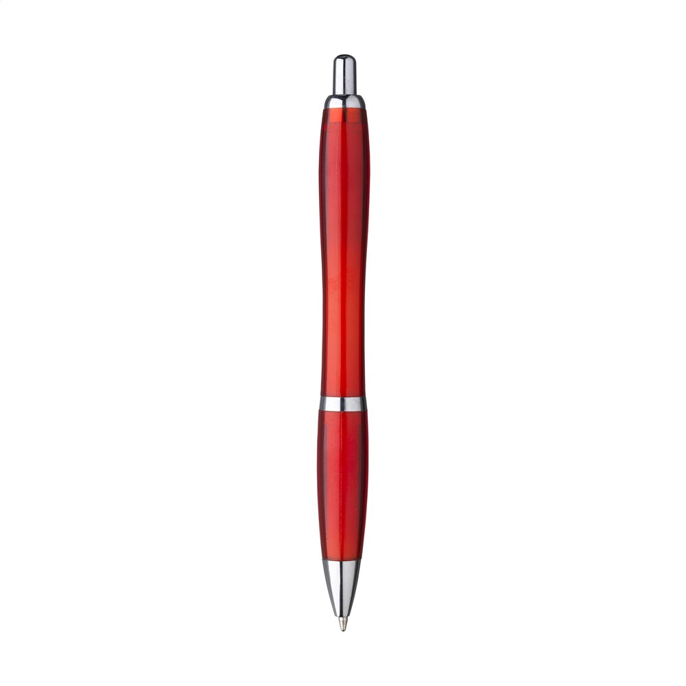 Blauwschrijvende balpen met transparant gekleurde houder van 100% gerecyled PET, hoogglans...meer