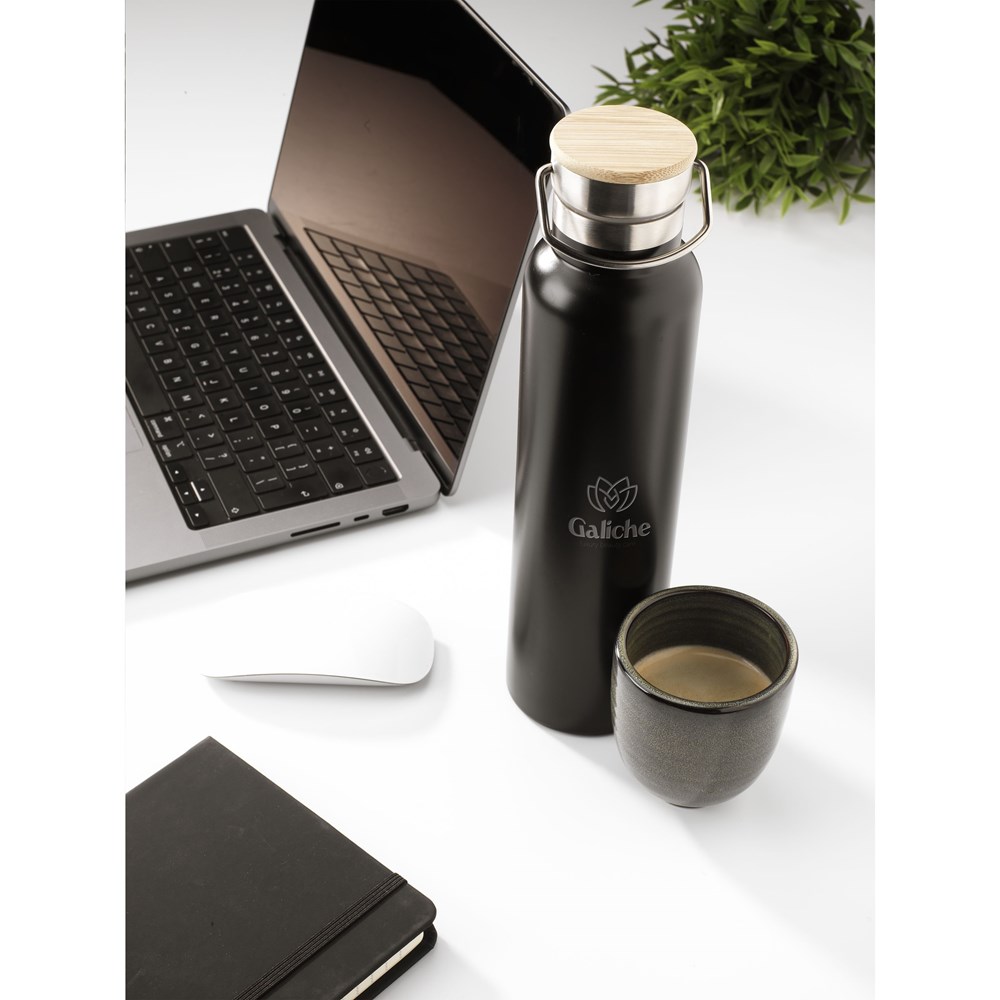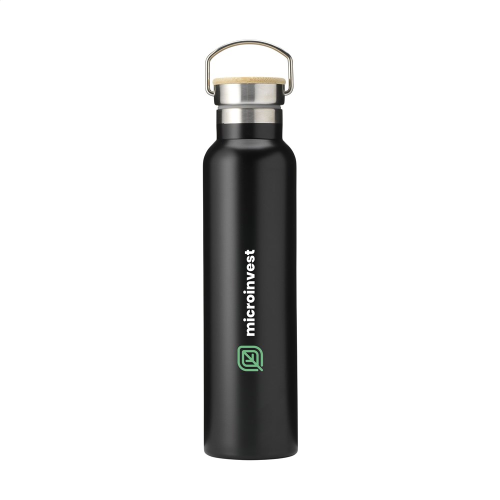 Dubbelwandige, lekvrije waterfles/thermosfles van gerecycled RVS. Vacuüm geïsoleerd. De handige schroefdop is een combinatie van RVS en bamboe. Geschikt voor het op temperatuur houden van koude of warme dranken. Dit design is gebaseerd op de vintage, glazen melkfles. Niet vaatwasserbestendig. RCS-gecertificeerd. Totaal gerecycled materiaal: 82%. Inhoud 750 ml. RVS kan vele malen gerecycled worden terwijl de kwaliteit van het materiaal grotendeels behouden blijft. Door het gebruik van gerecycled RVS worden minder nieuwe grondstoffen gebruikt. Dit betekent minder energieverbruik en minder gebruik van water. Per stuk verpakt.