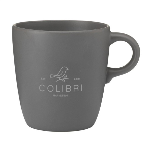 Mok in een eenvoudig, trendy design. Van hoogwaardig keramiek en voorzien van een matte toplaag aan de buiten- en binnenzijde. Inhoud 375 ml. OPMERKING: De witte mok kan niet worden voorzien van een lasergravure omdat deze onvoldoende zichtbaar is.
