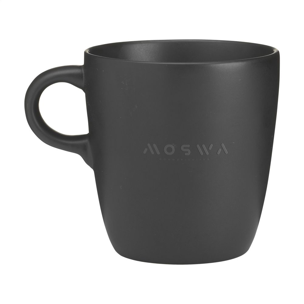 Mok in een eenvoudig, trendy design. Van hoogwaardig keramiek en voorzien van een matte toplaag aan de buiten- en binnenzijde. Inhoud 375 ml. OPMERKING: De witte mok kan niet worden voorzien van een lasergravure omdat deze onvoldoende zichtbaar is.