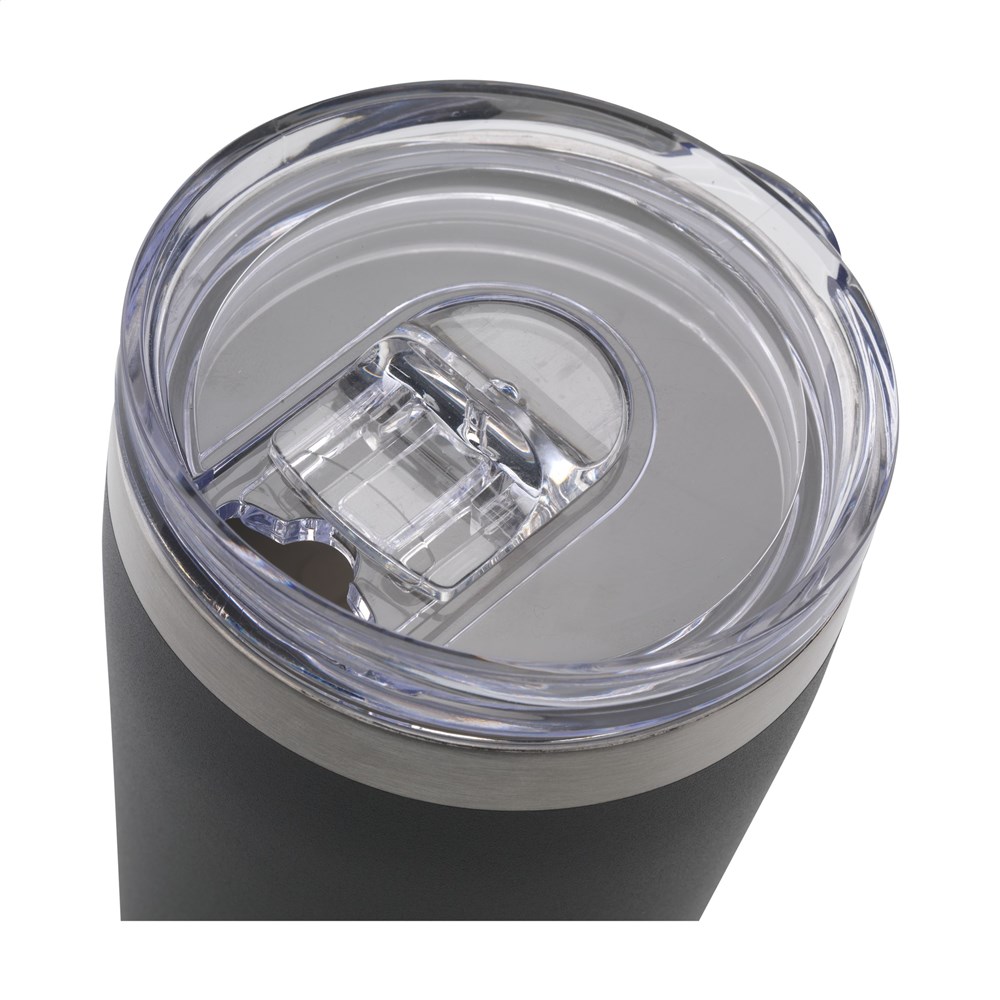 Dubbelwandige thermosbeker van gerecycled RVS. Afgewerkt met een mooie poeder coating. De beker heeft een transparante push-on deksel voorzien van een afsluitbare drinkopening. Past perfect in de koffiehouder van je auto. Ideaal voor onderweg. Niet vaatwasserbestendig. RCS-gecertificeerd. Totaal gerecycled materiaal: 75%. Inhoud 380 ml. RVS kan vele malen gerecycled worden terwijl de kwaliteit van het materiaal grotendeels behouden blijft. Door het gebruik van gerecycled RVS worden minder nieuwe grondstoffen gebruikt. Dit betekent minder energieverbruik en minder gebruik van water. Per stuk verpakt.