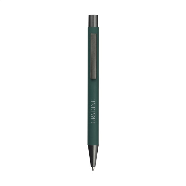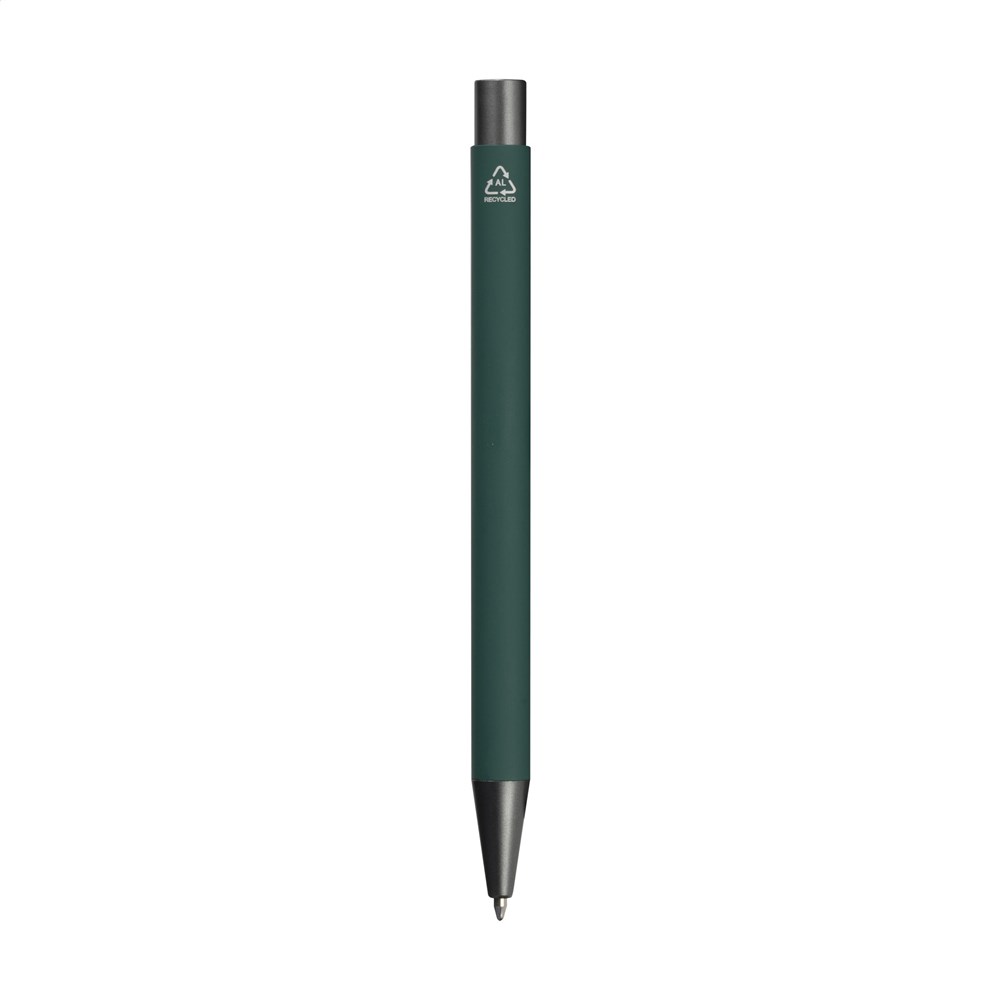 Blauwschrijvende balpen gemaakt van gerecycled aluminium. De houder is afgewerkt met een mooie rubberised finish. Met stevige metalen clip en kunststof puntstuk en drukknop. Door het gebruik van gerecycled aluminium worden er minder nieuwe grondstoffen gebruikt tijdens de productie van dit product. Dit betekent minder energieverbruik en minder gebruik van water.