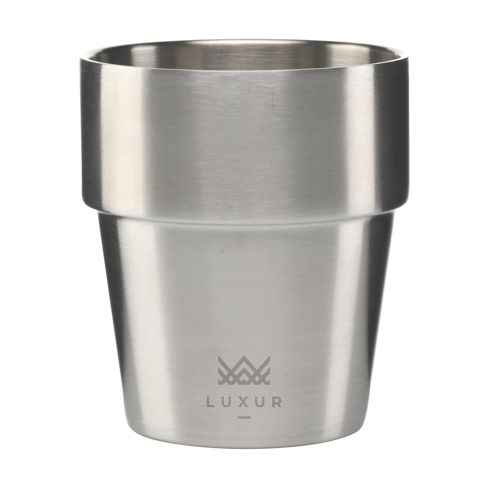 Dubbelwandige beker van 100% gerecycled RVS. Volledig recyclebaar. Deze tijdloze beker is...meer