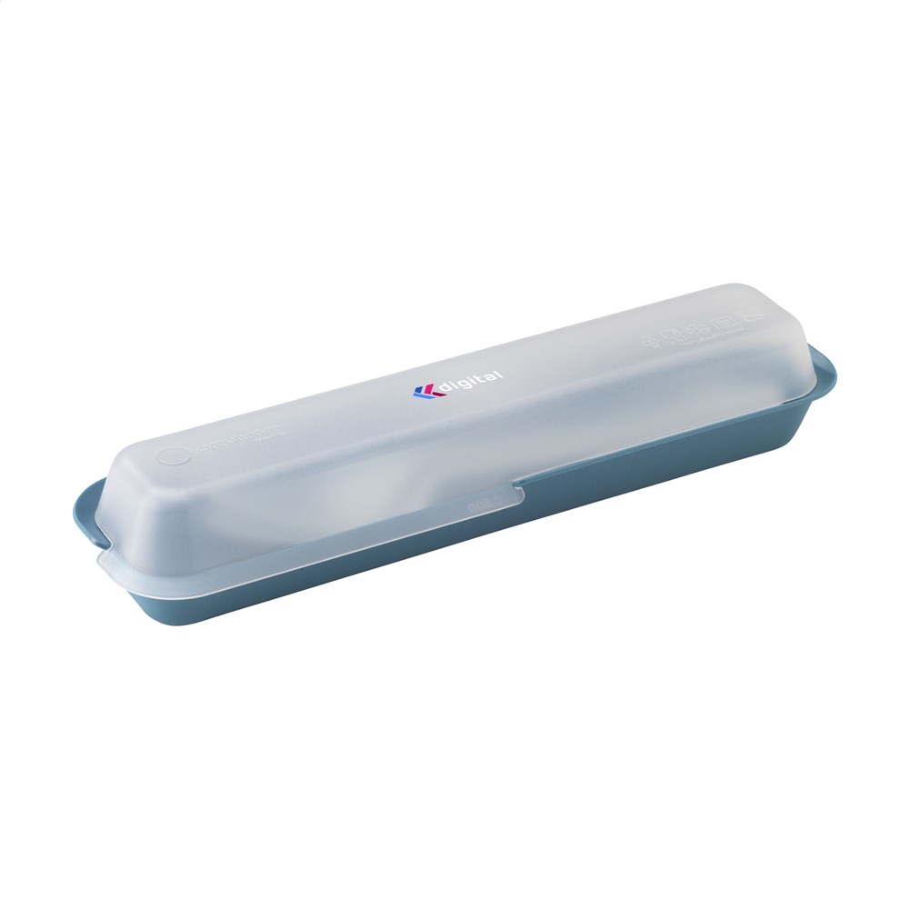 3-delige, herbruikbare kunststof bestekset van het merk Circulware. De set bestaat uit een lepel, vork en kartelmes. Uitermate geschikt tijdens trektochten, kamperen of onderweg. Licht in gewicht, praktisch en handzaam. Vaatwasserbestendig. Voor behoud van de opdruk wordt met de hand afwassen aanbevolen. Magnetronbestendig. 100% recyclebaar. Hiermee draagt deze set bij aan een circulaire economie. Per set geleverd in een stevige, bijpassende opbergcassette. Dutch design. Made in Holland.