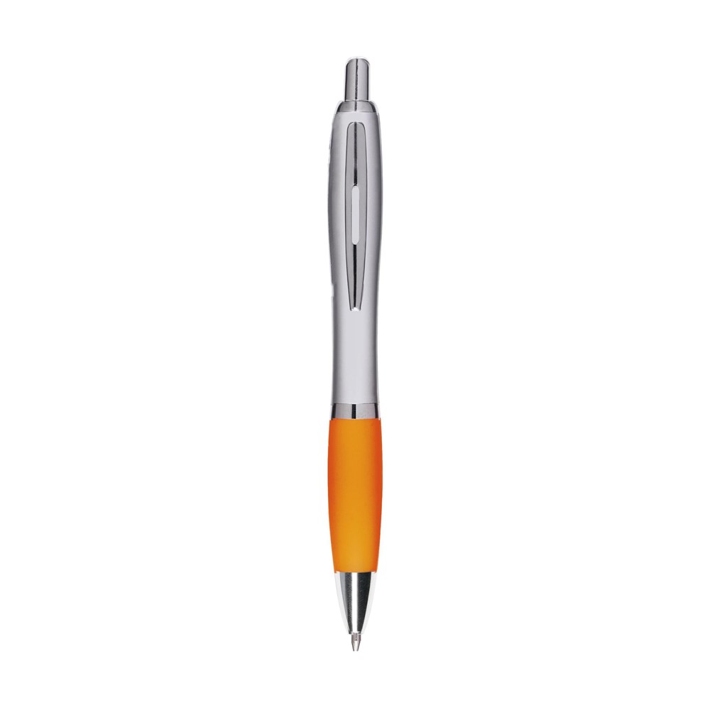 Blauwschrijvende balpen met gekleurd, gripvast voorstuk en metalen clip.meer