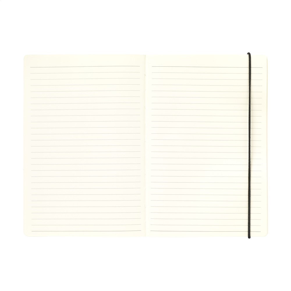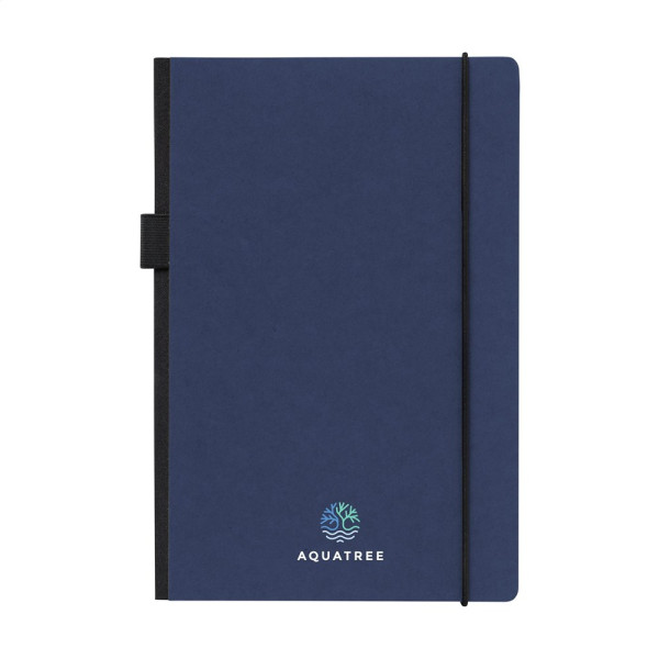 Praktisch notitieboek in A5-formaat. Met harde kaft van kraftkarton (300 g/m²). Het boekje heeft ca. 80 vel/160 pagina's crèmekleurig, gelinieerd FSC Mix gecertificeerd papier (80 g/m²). Met handige sluitelastiek en pennenlus. Aan de binnenzijde van de cover vind je een handig opbergvak.