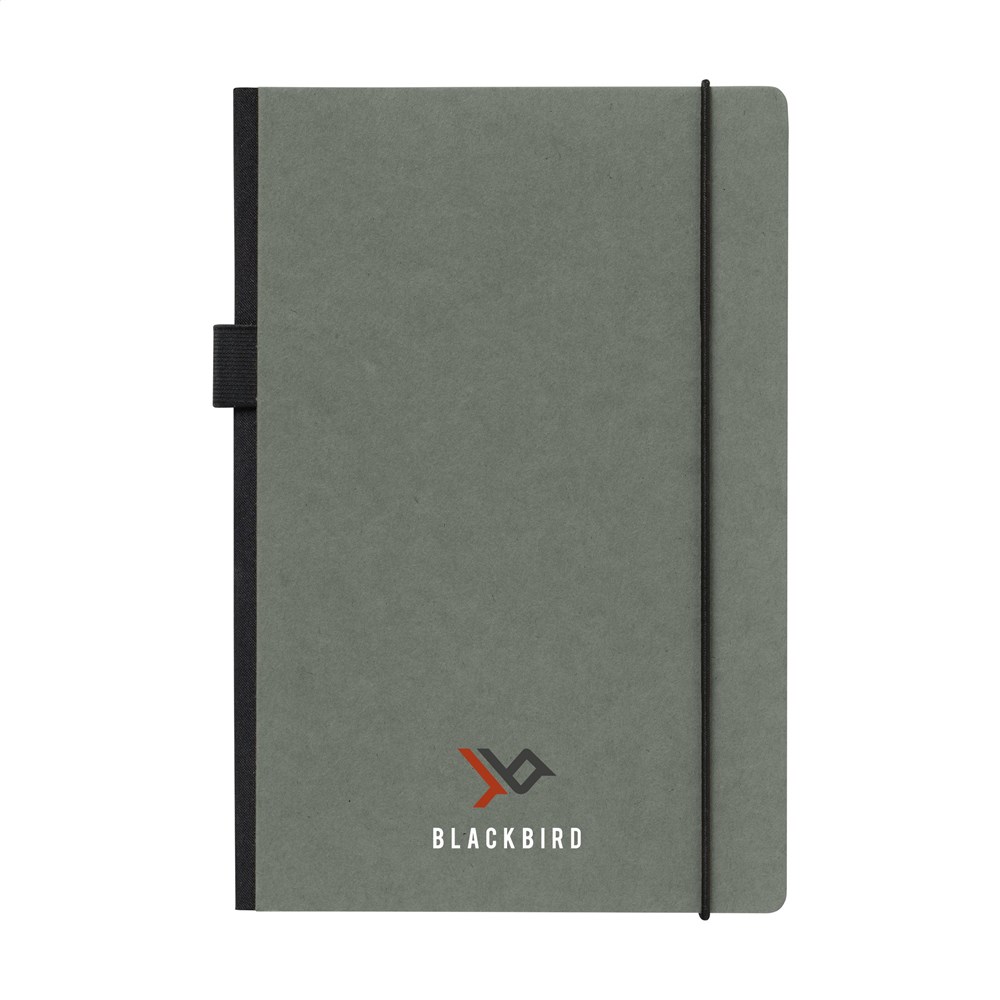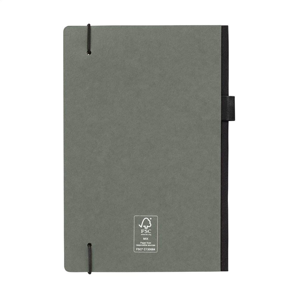 Praktisch notitieboek in A5-formaat. Met harde kaft van kraftkarton (300 g/m²). Het boekje heeft ca. 80 vel/160 pagina's crèmekleurig, gelinieerd FSC Mix gecertificeerd papier (80 g/m²). Met handige sluitelastiek en pennenlus. Aan de binnenzijde van de cover vind je een handig opbergvak.