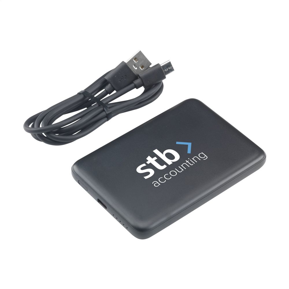 Magnetische, draadloze 15W powerbank. De behuizing is gemaakt van 100% GRS-gecertificeerd gerecycled post-consumer ABS. Met ingebouwde polymer Li-ion batterij (5.000 mAh). Klik de oplader op de achterkant van je mobiele telefoon om je apparaat op te laden. Compatibel met alle mobiele apparaten die QI draadloos laden ondersteunen. Output: 15W. Op andere telefoons kan deze worden gebruikt als een gewone oplader. USB-C Input: 5V⎓3A, 9V⎓2.22A. USB-C Output: 5V⎓3.0A 9V⎓ 2.22A 12V⎓1.67A. Inclusief USB-C/USB-C gerecyclede TPE oplaadkabel en gebruiksaanwijzing. GRS-gecertificeerd. Totaal gerecycled materiaal: 21%. Per stuk verpakt.