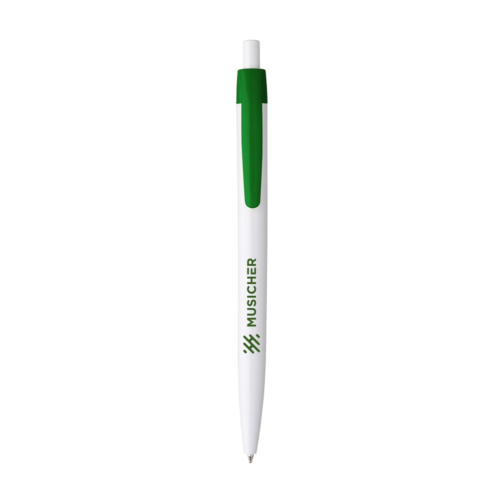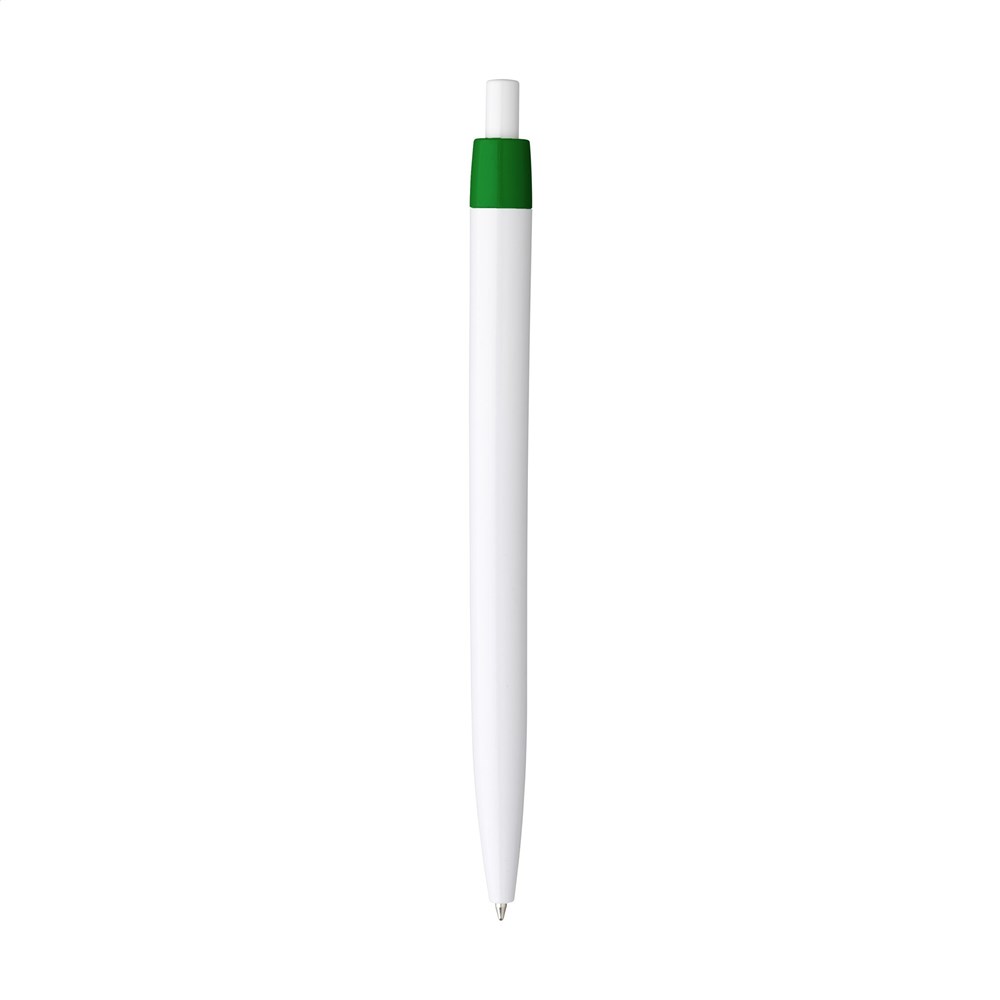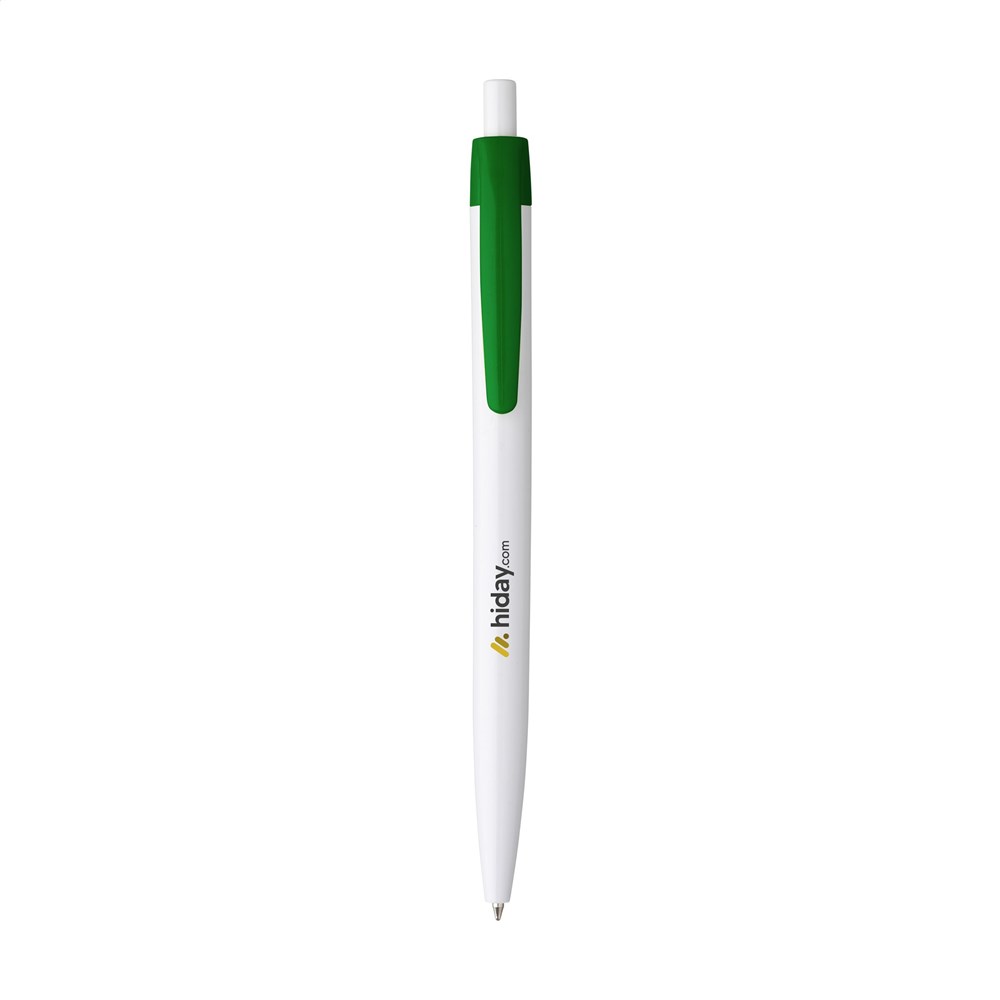 Blauwschrijvende balpen met houder uit één geheel. Zeer geschikt voor een royale opdruk.