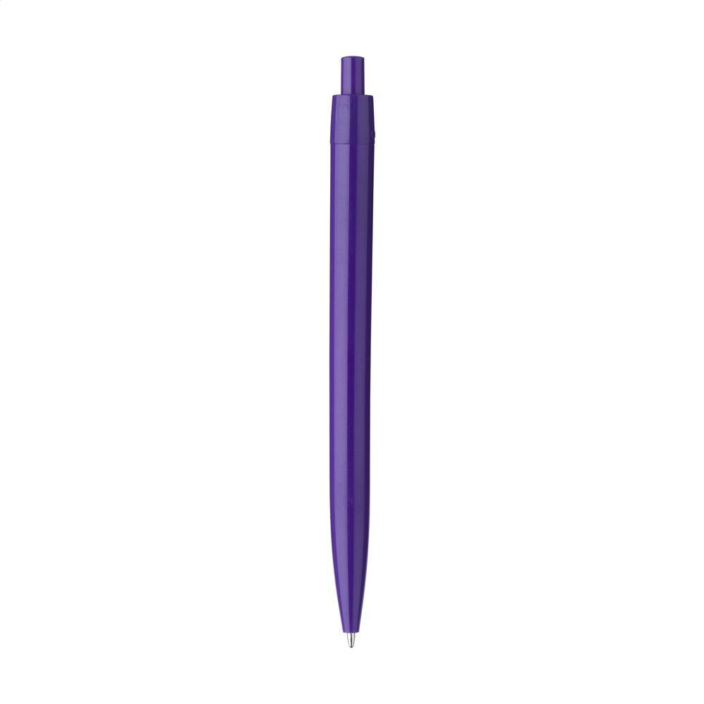 Blauwschrijvende balpen met houder uit één geheel. Zeer geschikt voor een royale opdruk.