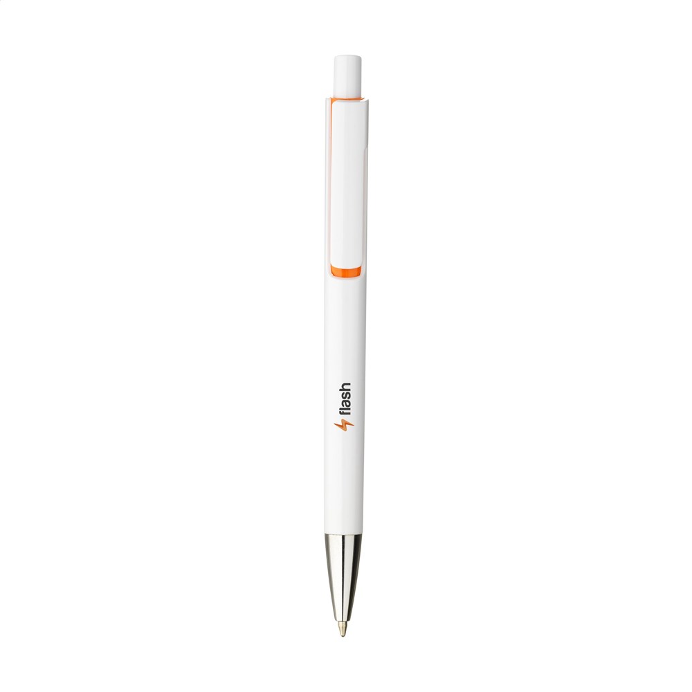 Blauwschrijvende balpen met een houder van 100% gerecycled ABS. Met uniek design: de body en clip van deze balpen zijn uit één geheel vormgegeven en dat maakt deze pen tot een bijzondere eyecatcher. Met opvallend kleuraccent onder de optisch 'zwevende' clip. GRS-gecertificeerd.