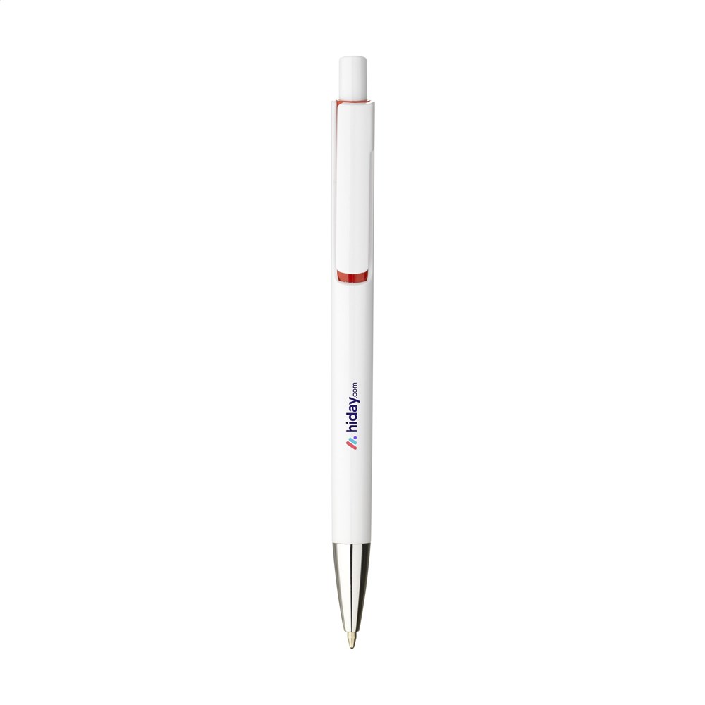 Blauwschrijvende balpen met een houder van 100% gerecycled ABS. Met uniek design: de body en clip van deze balpen zijn uit één geheel vormgegeven en dat maakt deze pen tot een bijzondere eyecatcher. Met opvallend kleuraccent onder de optisch 'zwevende' clip. GRS-gecertificeerd.