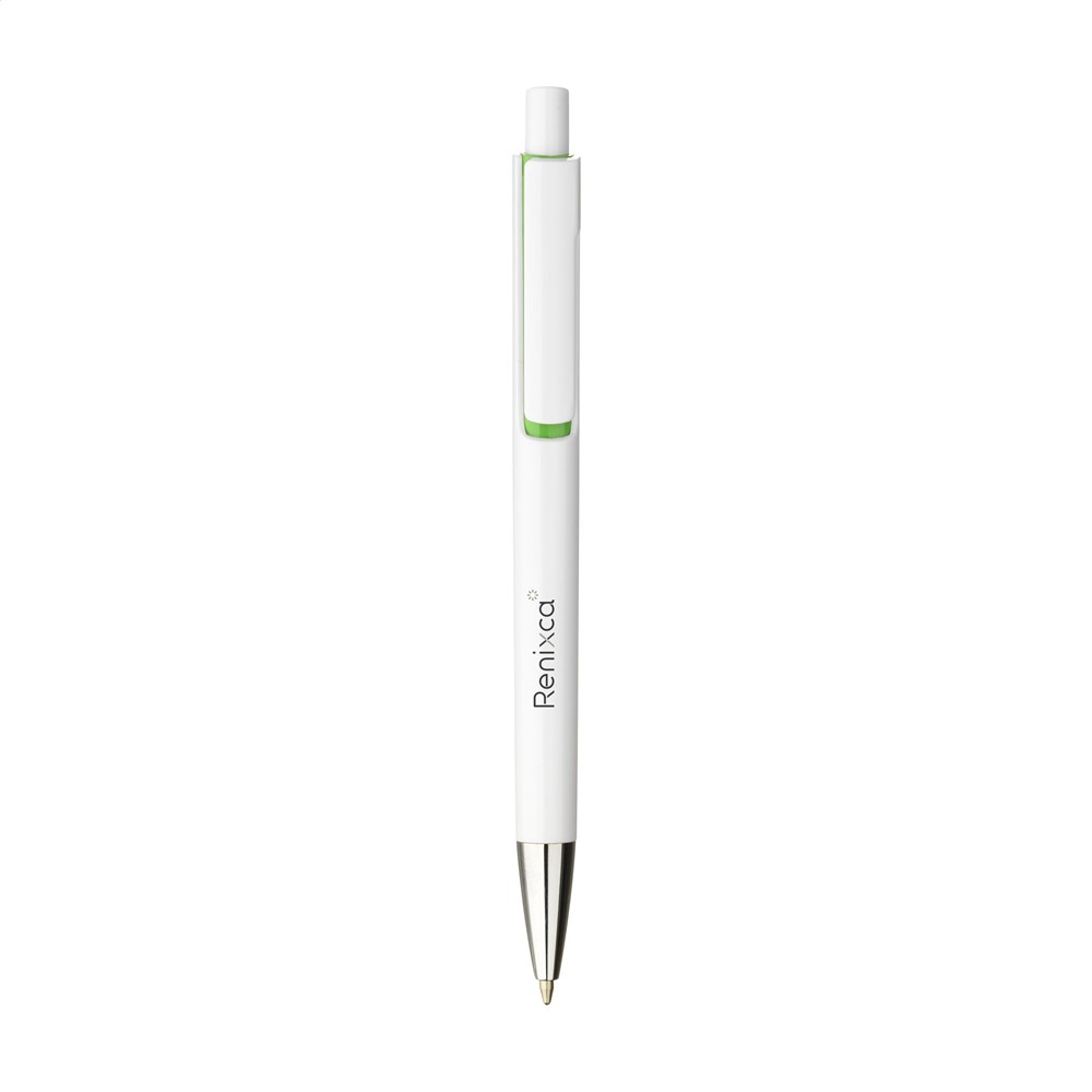 Blauwschrijvende balpen met een houder van 100% gerecycled ABS. Met uniek design: de body en clip van deze balpen zijn uit één geheel vormgegeven en dat maakt deze pen tot een bijzondere eyecatcher. Met opvallend kleuraccent onder de optisch 'zwevende' clip. GRS-gecertificeerd.