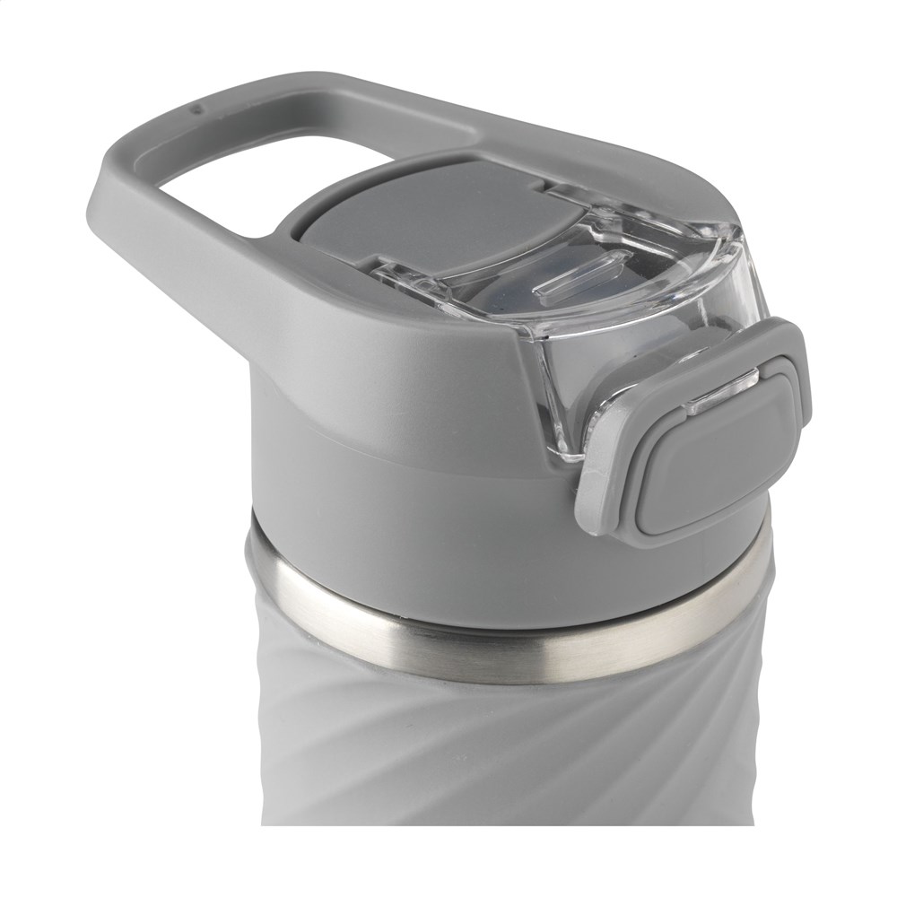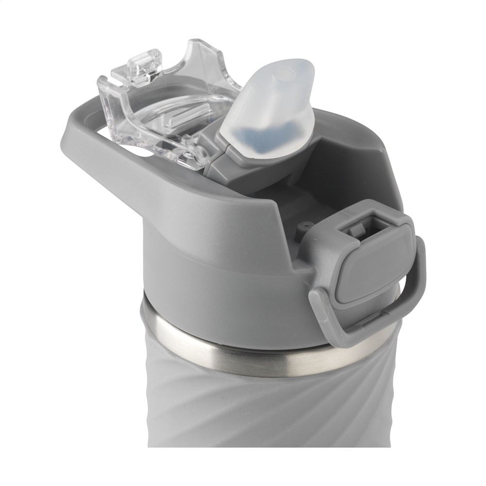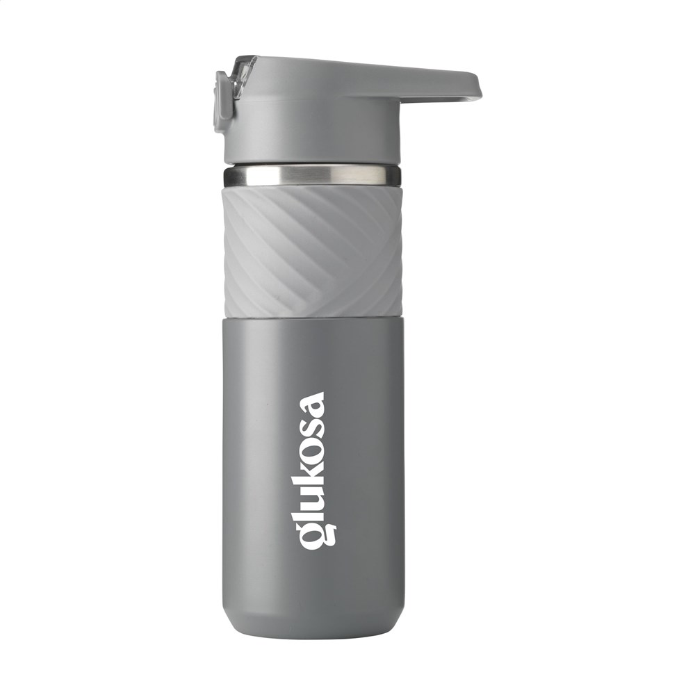 Dubbelwandige waterfles/thermosfles van gerecycled RVS. Met een lekvrije PP schroefdop, een inklapbare, siliconen drinktuit en een rietje. De drinktuit wordt hygiënisch afgesloten met een transparante deksel met drukknop en vergrendeling. Handig tijdens het sporten en voor in de auto. De fles hoeft namelijk niet gekanteld te worden tijdens het drinken. De fles is voorzien van een royale rubberen slipvaste grip. Door het chique maar toch stoere design valt de fles direct op. Geschikt voor het op temperatuur houden van koude of warme dranken. Niet vaatwasserbestendig. RCS-gecertificeerd, Totaal gerecycled materiaal: 68%. Inhoud 500 ml. RVS kan vele malen gerecycled worden terwijl de kwaliteit van het materiaal grotendeels behouden blijft. Door het gebruik van gerecycled RVS worden minder nieuwe grondstoffen gebruikt. Dit betekent minder energieverbruik en minder gebruik van water. Per stuk verpakt.
