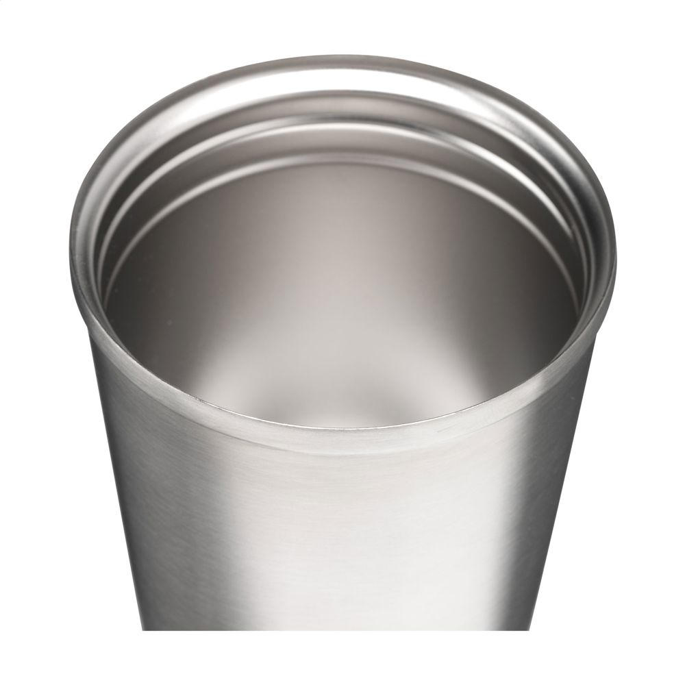 Dubbelwandige thermosbeker van gerecycled RVS. Mooi afgewerkt met een matte finish. Met PP...meer