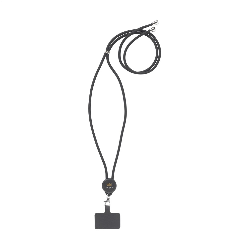 Verstelbare telefoonlanyard met rond koord gemaakt van 100% GRS RPET-polyester. Met metalen...meer