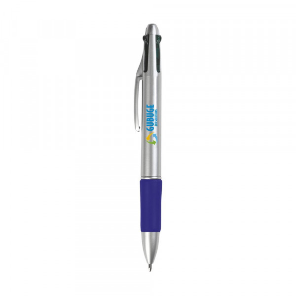 4-kleurenbalpen met gripvast, rubberen voorstuk. Voorzien van een blauwe, groene, rode en zwarte vulling.