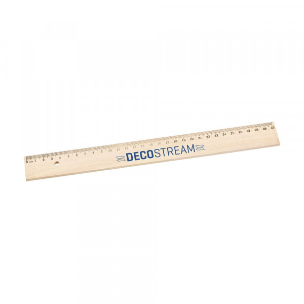 Liniaal (30 cm) van lindehout, met ingelegde metaalstrip.