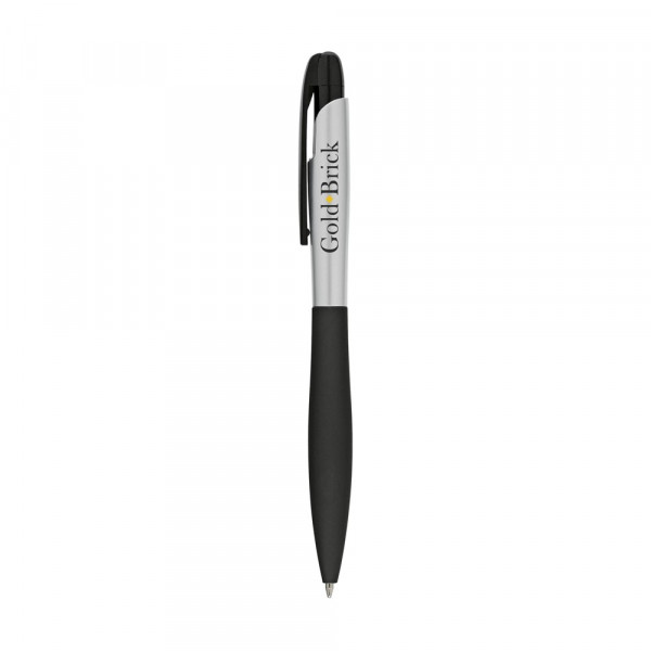 Blauwschrijvende, slanke balpen met gripvast, rubberen voorstuk.