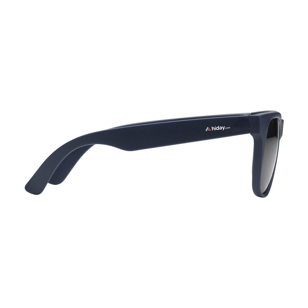 Modieuze zonnebril. Het frame is gemaakt van gerecycled kunststof. Met UV 400 bescherming (volgens Europese normen). GRS-gecertificeerd. Totaal gerecycled materiaal: 66%.