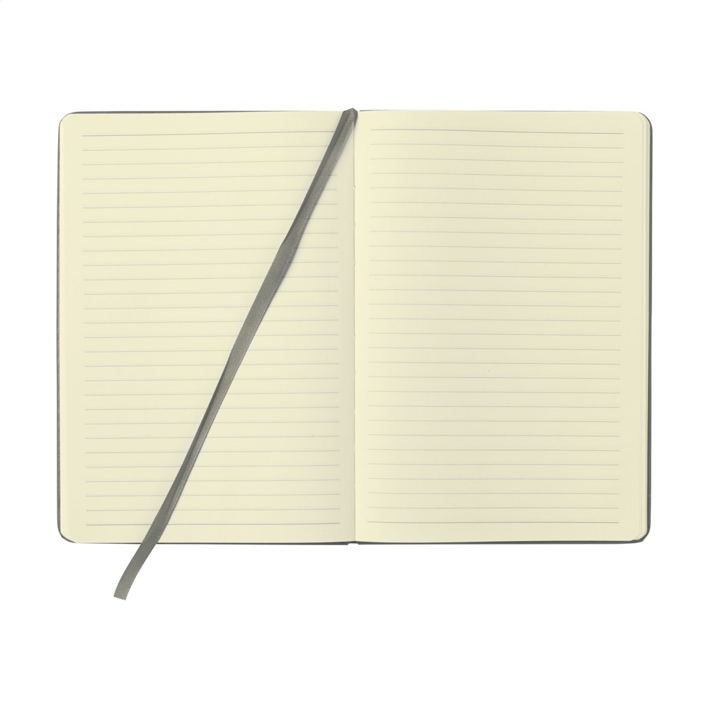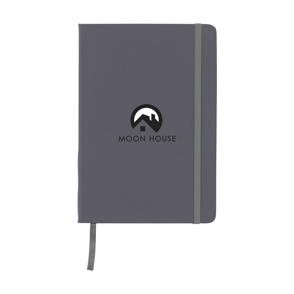 Praktisch notitieboekje in A5-formaat. Met harde PU cover, ca. 80 vel/160 pagina's crèmekleurig, gelinieerd FSC Mix gecertificeerd papier (70 g/m²), elastische sluiting en leeslint.