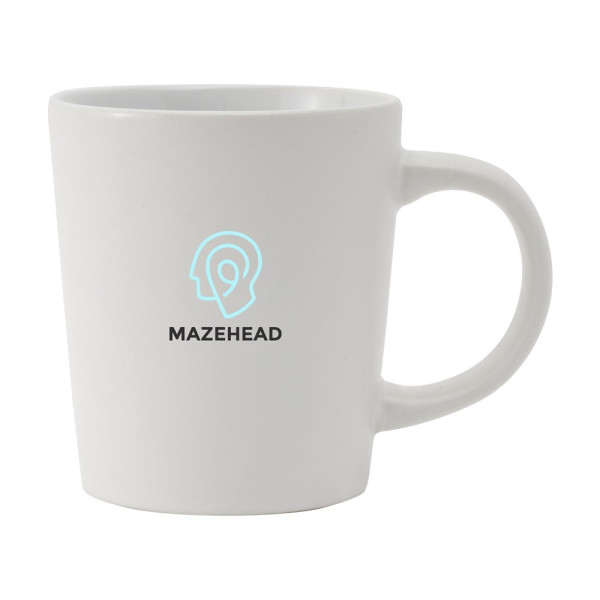 Opvallende mok in een aantrekkelijk design. Van hoogwaardig keramiek en voorzien van een matte toplaag. Inhoud 250 ml. OPMERKING: De witte mok kan niet worden voorzien van een lasergravure omdat deze onvoldoende zichtbaar is. De opdruk is vaatwasmachine getest en gecertificeerd: EN 12875-2.