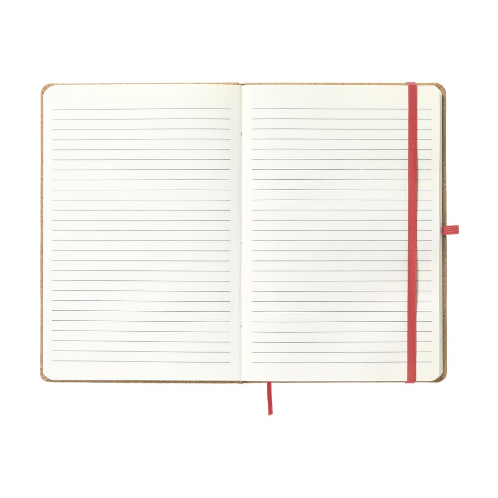 A5-formaat notitieboekje van kurk. Met ca. 80 vel/160 pagina's crèmekleurig, gelinieerd, FSC Mix gecertificeerd papier (70 g/m²). Met handige penlus, sluitelastiek en leeslint.
