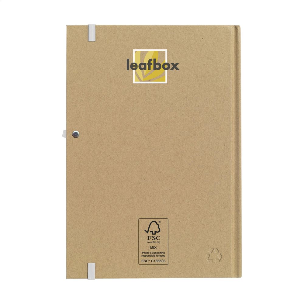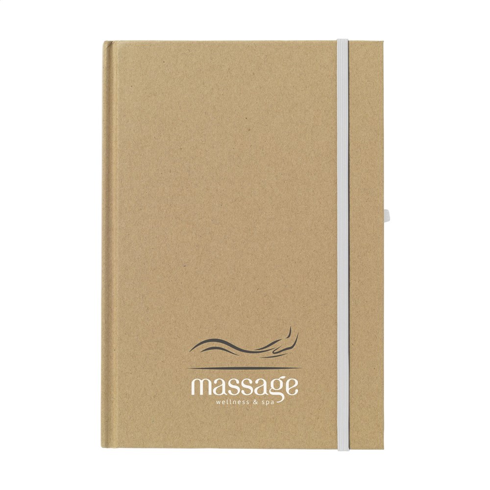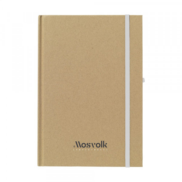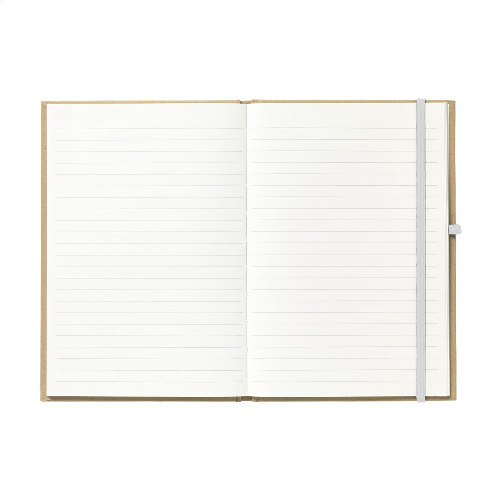 A5-formaat notitieboekje van gerecycled materiaal. Met ca. 80 vel/160 pagina's crèmekleurig, gelinieerd FSC Mix gecertificeerd papier (70 g/m²), handige penlus en sluitelastiek.