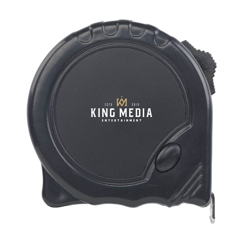 Rolmaat met een behuizing van gerecycled ABS plastic en een hardstalen band met een lengte van 3 meter en een bandbreedte van 1,6 cm. Met aanduiding in centimeters, broekriemclip en polyester polsriem. Geijkt volgens Europese normen. RCS-gecertificeerd. Totaal gerecycled materiaal: 20%. Per stuk verpakt.