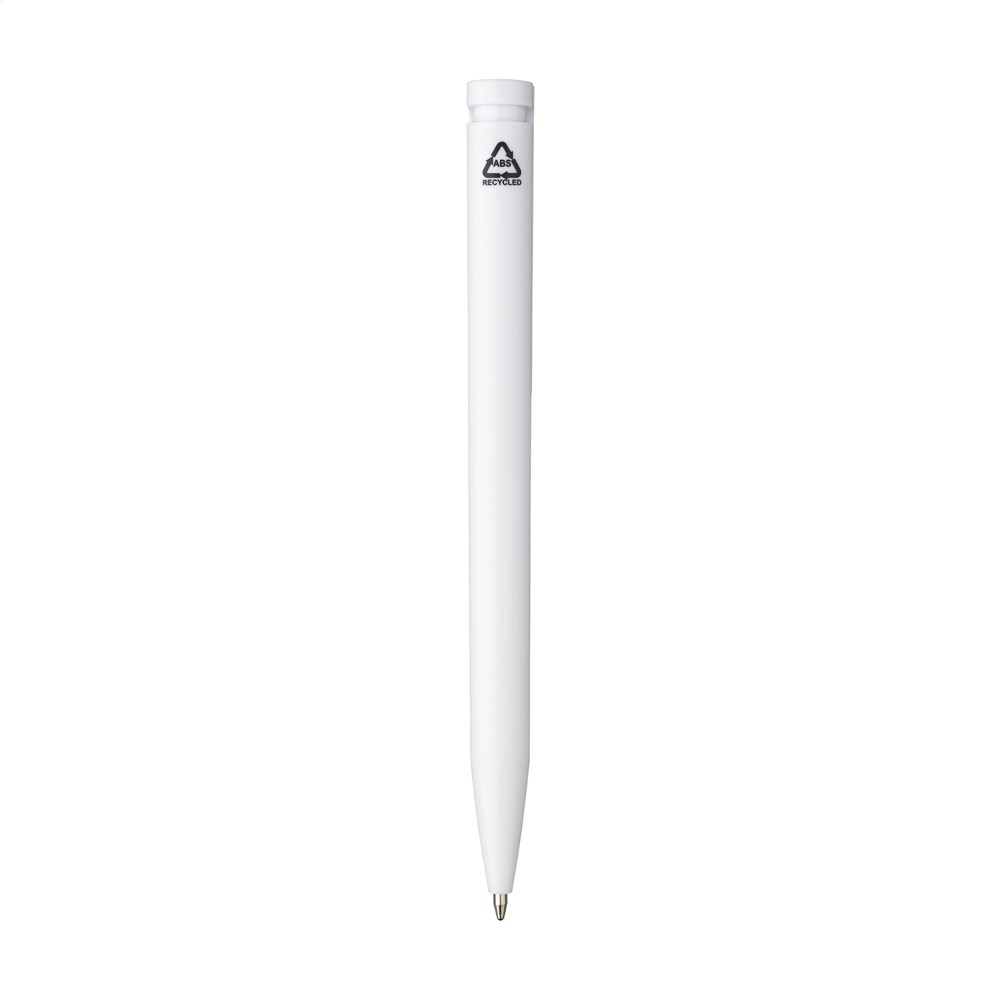 Blauwschrijvende balpen met houder gemaakt van 100% gerecycled ABS. De clip/drukknop heeft een opvallend kleuraccent en biedt ruimte voor een royale digitale full colour opdruk. GRS-gecertificeerd.