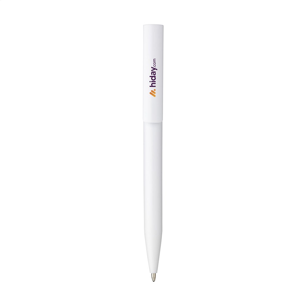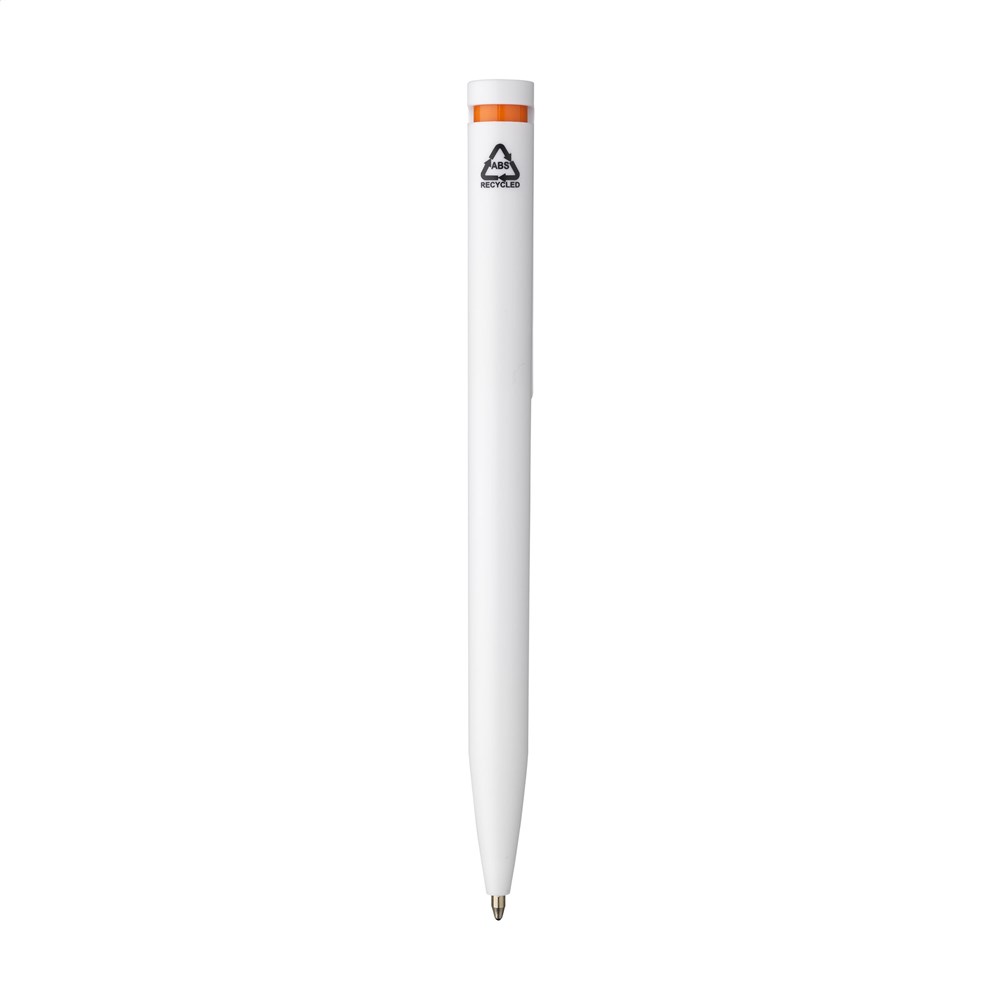 Blauwschrijvende balpen met houder gemaakt van 100% gerecycled ABS. De clip/drukknop heeft een opvallend kleuraccent en biedt ruimte voor een royale digitale full colour opdruk. GRS-gecertificeerd.