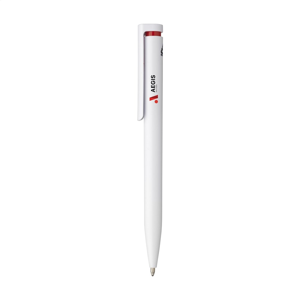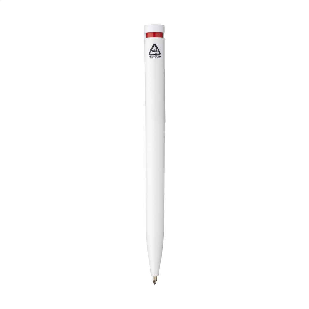 Blauwschrijvende balpen met houder gemaakt van 100% gerecycled ABS. De clip/drukknop heeft een opvallend kleuraccent en biedt ruimte voor een royale digitale full colour opdruk. GRS-gecertificeerd.