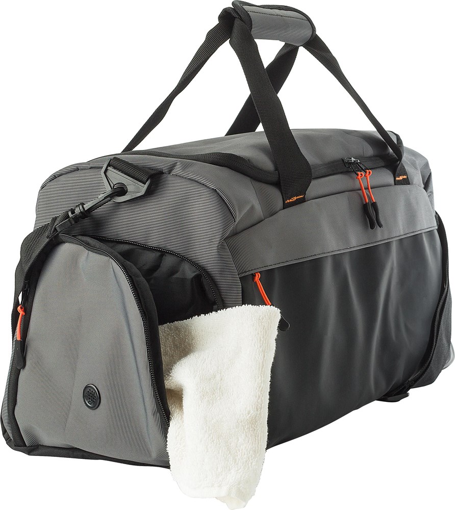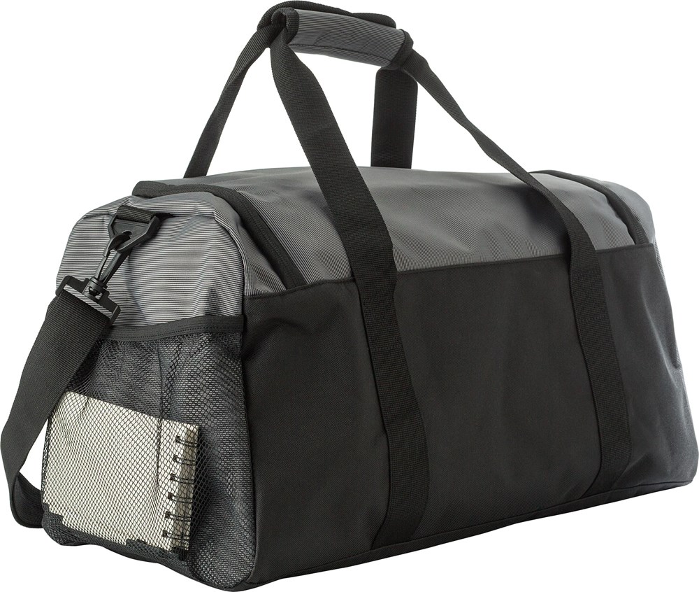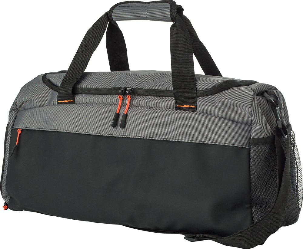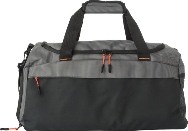 500D Two Tone reistas met voorvak met ritssluiting. Geventileerd zijvak voor schoenen, mesh zak aan de andere kant. Korte handvatten met klittenband voor sluiting. Groot hoofdcompartiment met versterkte bodem.