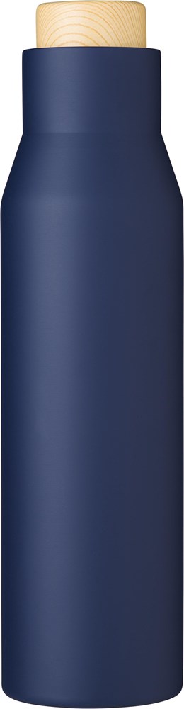 RVS (s/s304) fles (500 ml) met een dubbele wand en een kunststof dop met bamboe-look. Individueel verpakt in een bruine kartonnen doos.