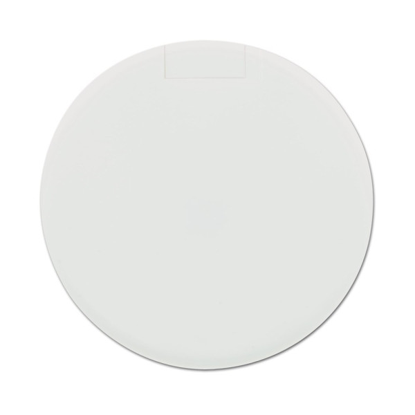 Rond en plat pepermuntdoosje. In gekleurd transparant of hardcolour wit. Inhoud: Circa 6,5 gram suikervrije pepermuntjes.
