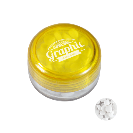 Kunststof rond potje met extra sterke `triangle` mintjes