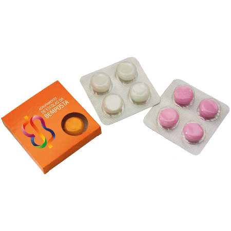 Doosje met 4 Mentos in blister, 65 x 65 x 15 mm., mint, strong mint or fruit mixmeer