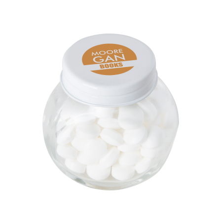 Kleine glazen pot gevuld met ca. 40 gr. mints gekleurd deksel