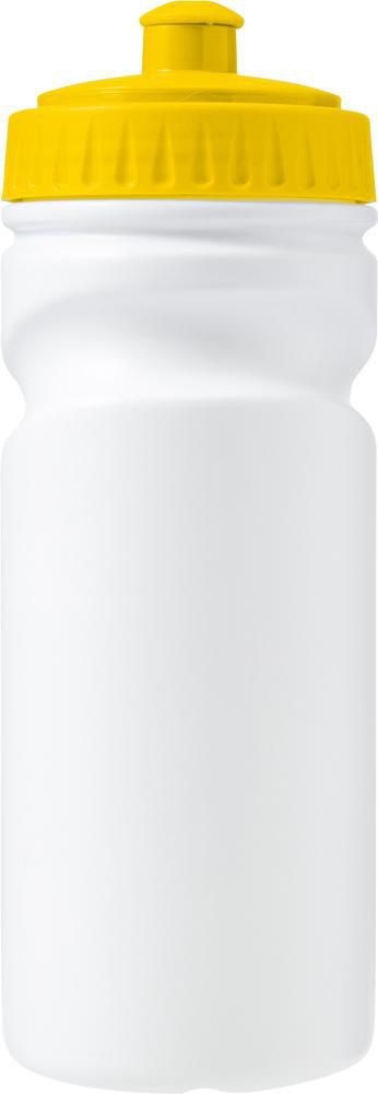 100% Recyclebare kunststof (HDPE) drinkfles/bidon (500 ml) met sporttuit, gemakkelijk te sluiten door erop te drukken. Met 4 uitsparingen voor extra grip. HDPE is uitstekend geschikt voor recycling wanneer de drinkfles voor een lange periode gebruikt is.